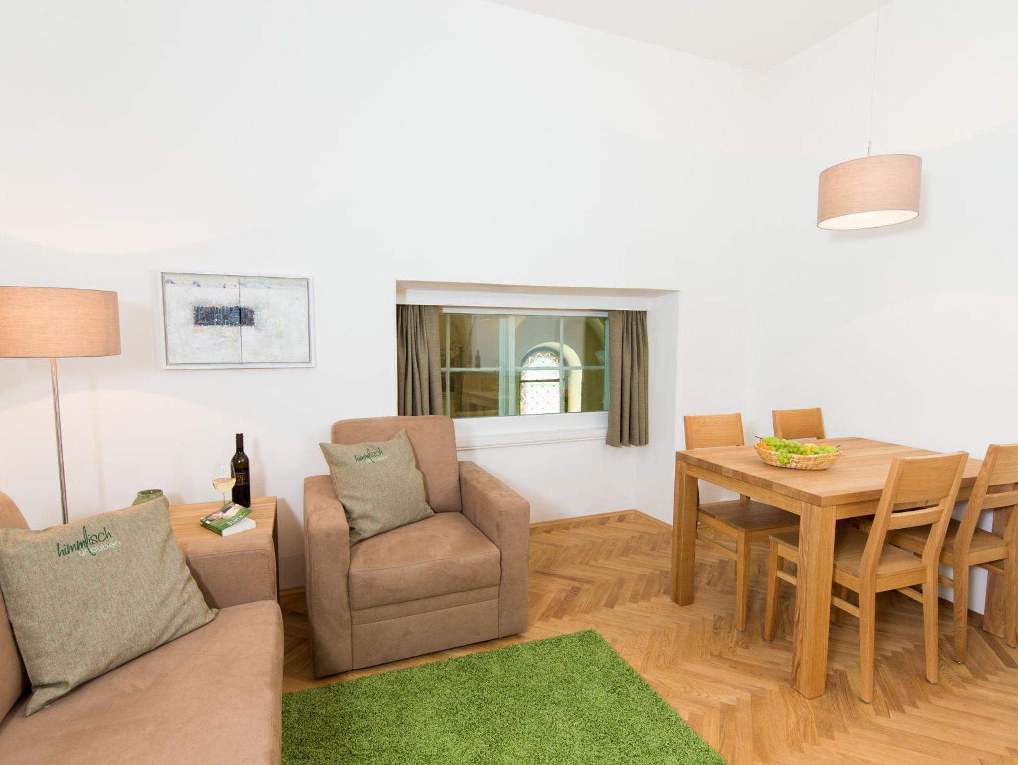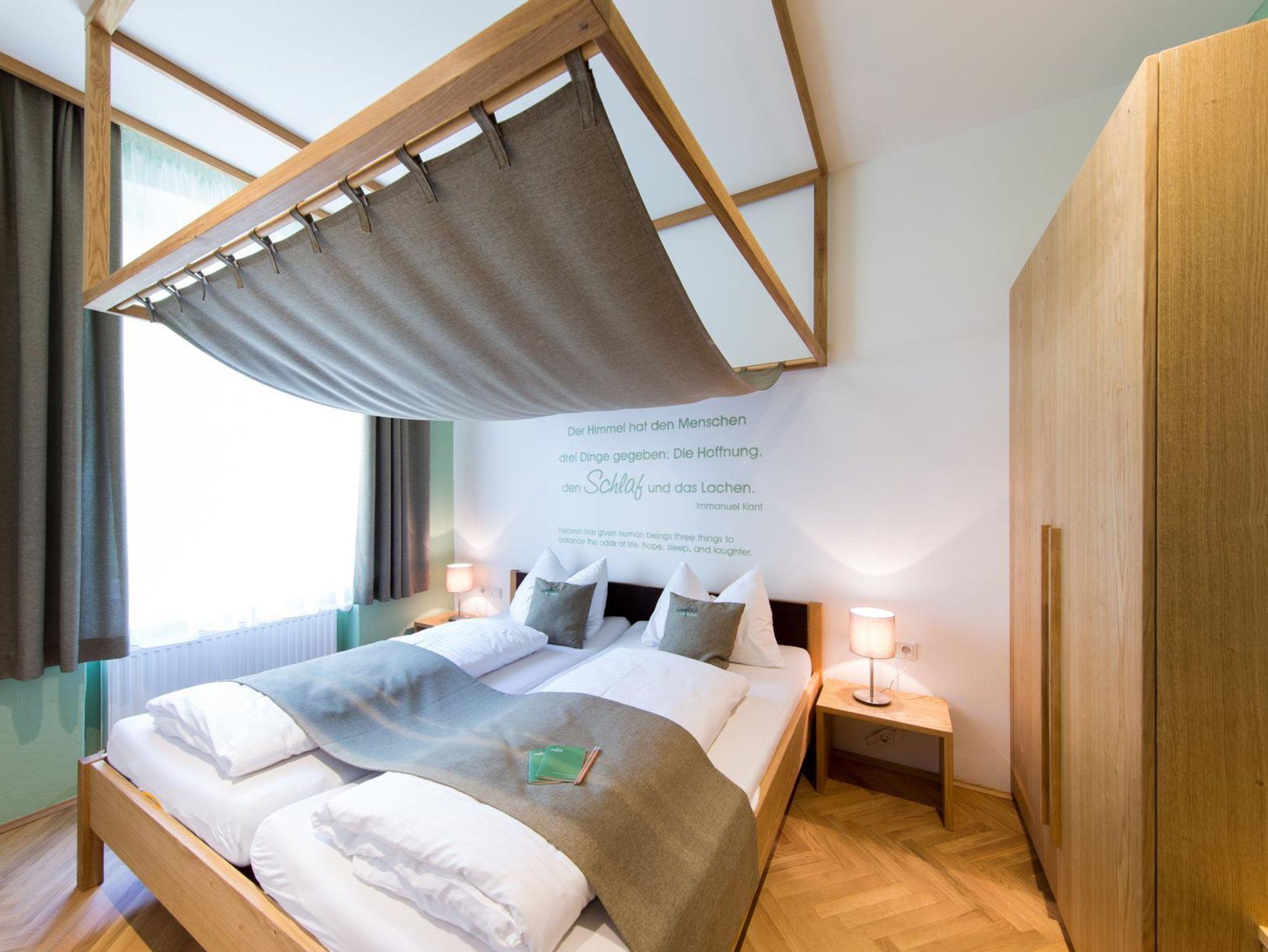 Nach einem behutsamen Umbau und einer Sanierung des Hauses stehen Ihnen seit Ende Mai 2015 vier Appartements im Obergeschoß für eine Auszeit zur Verfügung. Wie in all unseren Häusern wurde auch hier viel Augenmerk auf natürliche Materialien und eine angenehme Wohnatmosphäre gelegt. Zentrales Element aller Appartements sind die Himmelbetten, die teilweise eine überraschende Ausführung aufweisen. Besonderes Highlight ist das Appartement Hl. Dreifaltigkeit, das einen direkten Blick aus dem Wohnzimmer auf den Altar der angrenzenden Kirche ermöglicht.
