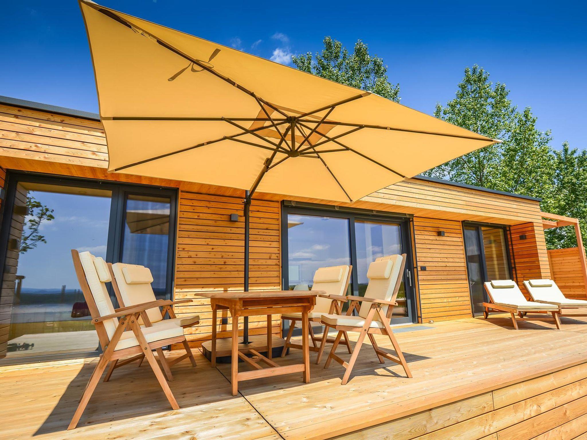 In erster Reihe und mit freiem Blick auf die atemberaubende Natur hält das WeinHAUS 02 jede Menge Komfort und Wellness bereit. Auf 40 Quadratmetern bietet das Ferienhaus mit einer komplett ausgestatteten Küche, einem gemütlichen Schlafzimmer für 2 sowie Bad mit Dusche und WC separat alles für eine erholsame Auszeit. Noch mehr Entspannung verspricht die private Infrarotkabine im Ferienhaus.