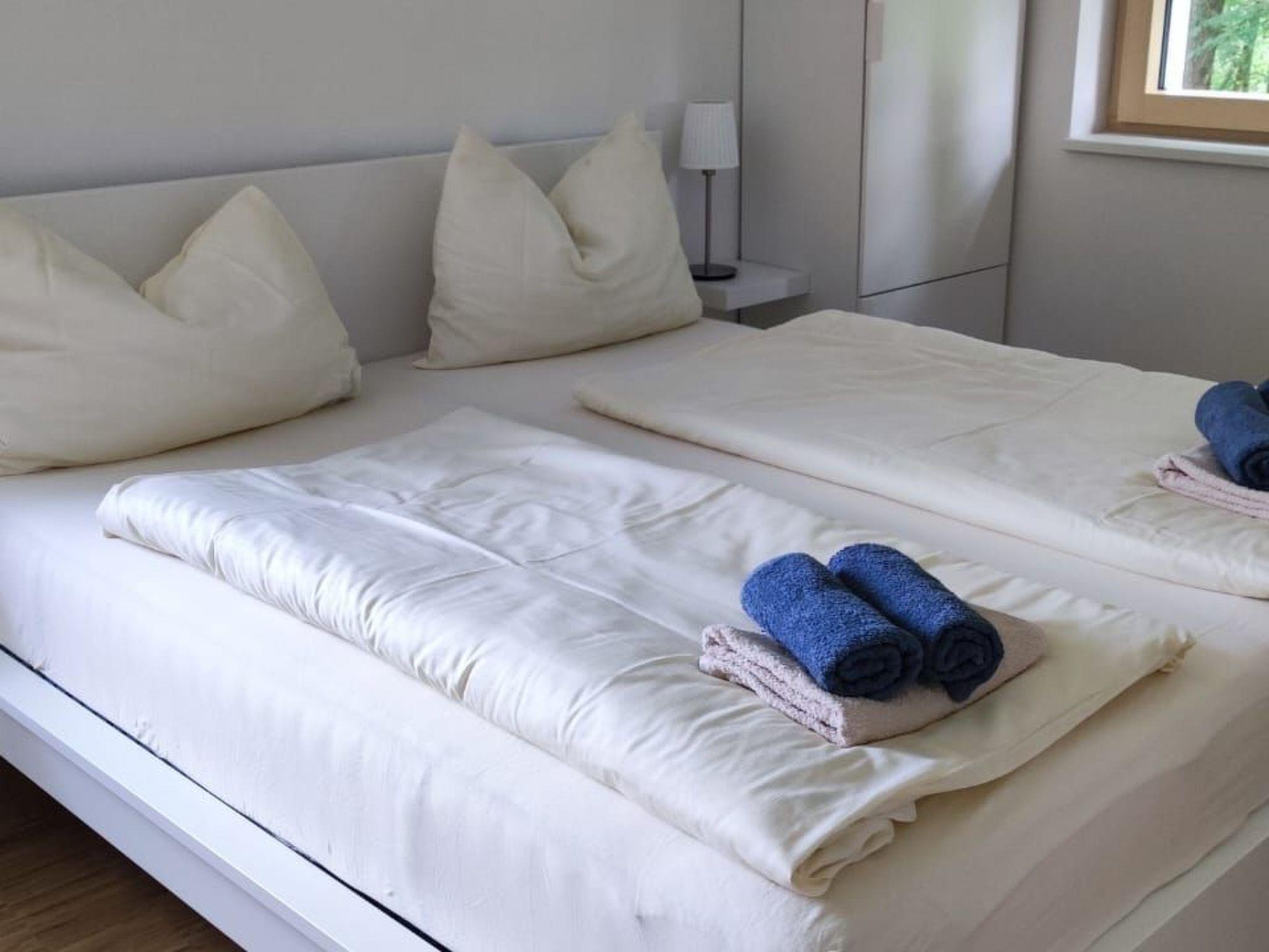 Unsere Unterkunft eignet sich ideal für eine oder mehrere Familien: die große Wohneinheit (8 Betten) hat neben einem großen Masterbedroom (Doppelbett) und zwei Schlafzimmern für jeweils zwei Personen zusätzlich im Wohnzimmer eine komfortable Ausziehcouch für zwei weitere Gäste. Das kleinere Apartment (2 Betten) hat ein Schlaf-/Wohnzimmer mit einem Doppelbett. Beide Apartments sind ausgestattet mit Küche und Bad. Die große Einheit hat neben einem Abstellraum auch ein weiteres WC. Die Apartments sind getrennt begehbar und absperrbar aber über eine Innenstiege verbunden. Jedes der zwei Apartments verfügt über eine eigene Sonnenterrasse.