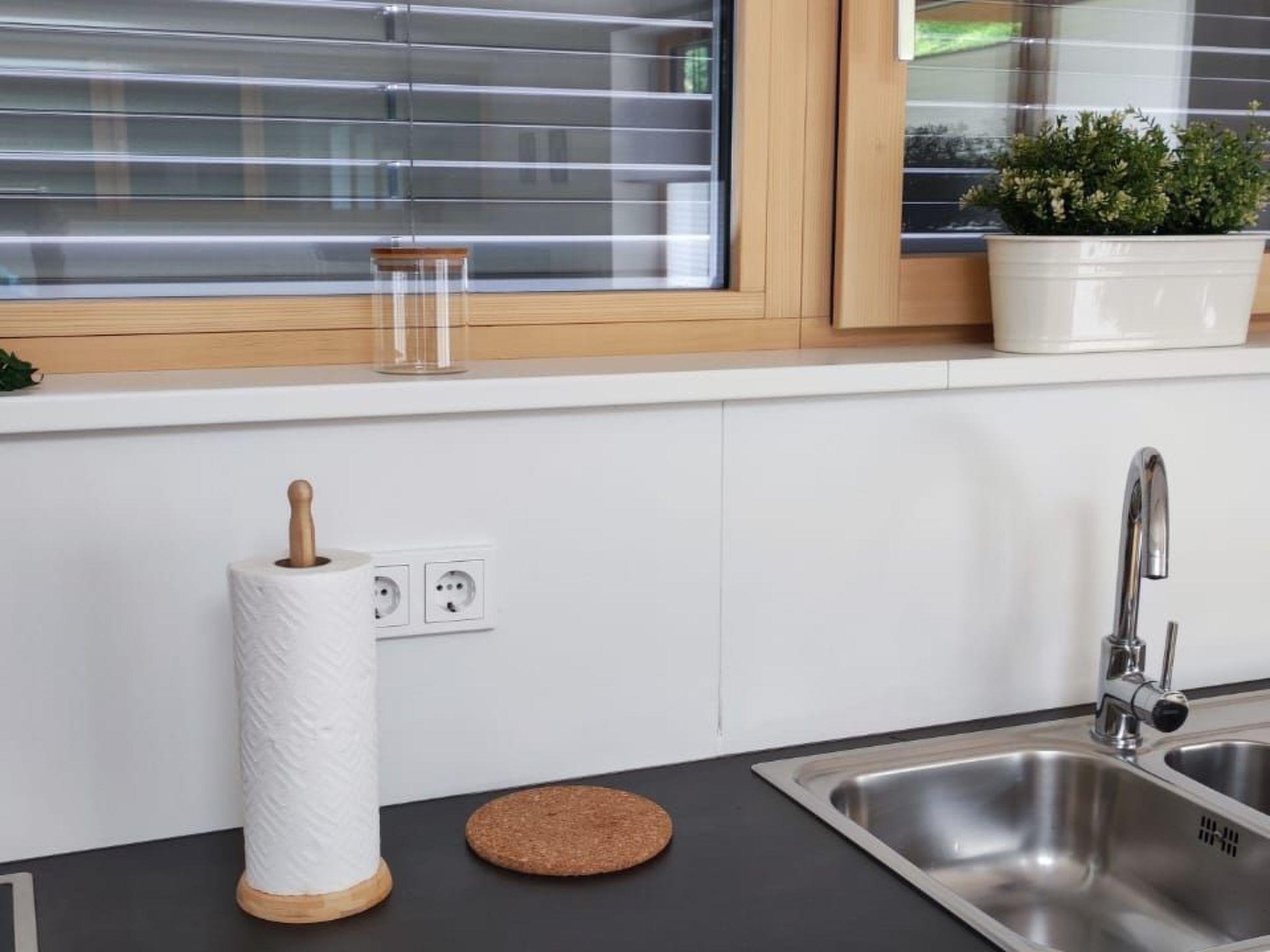 Infrarot-Holzpaneele und zwei Holzöfen sorgen für eine behagliche Wärme