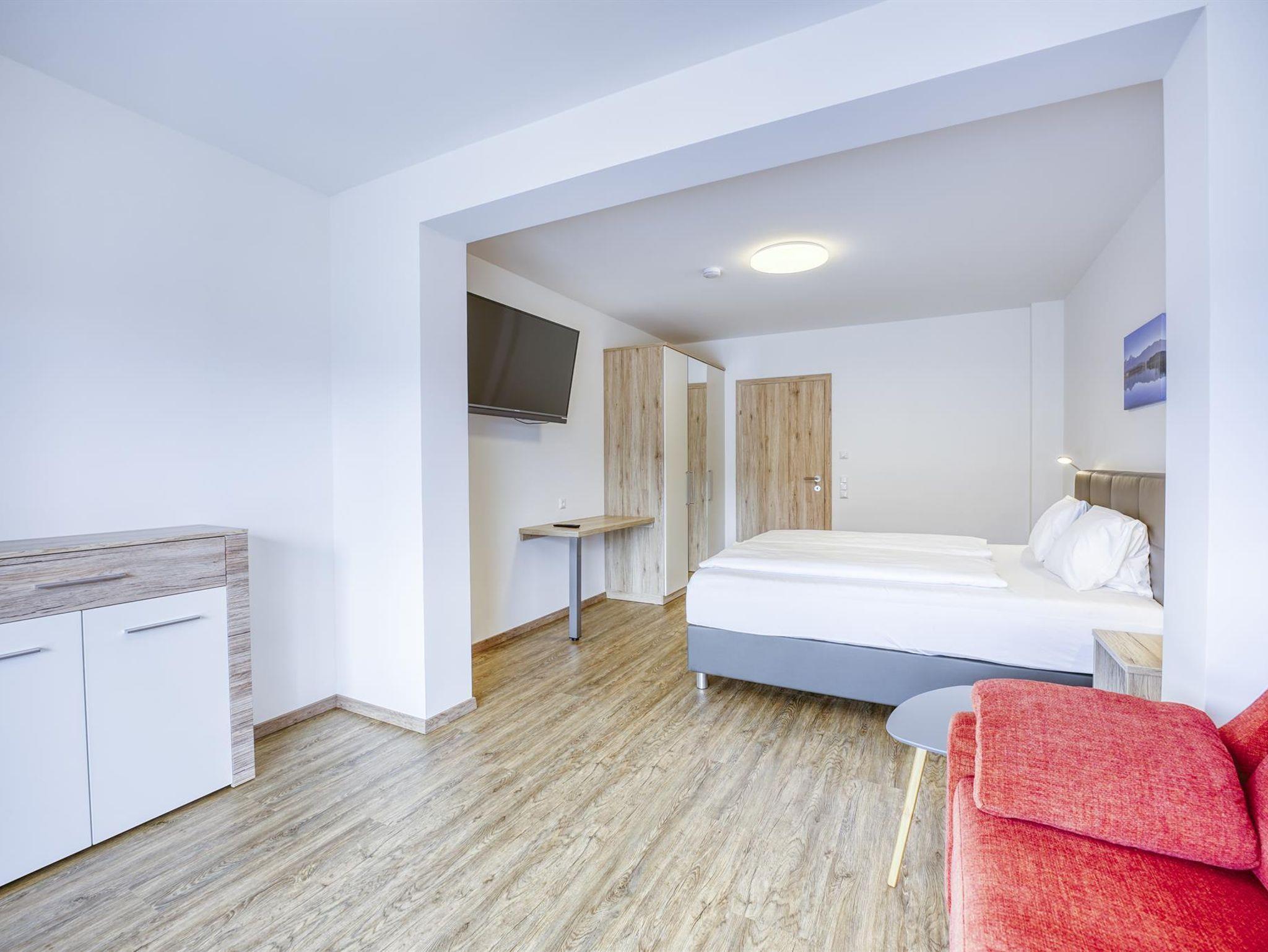 Unsere Ferienwohnungen Haus 3, sind mit 1 - 2 Schlafräumen, 1 Wohnraum, Kochnische - komplett eingerichtet, Dusche WC, Sat-TV, gratis WLAN und Balkon. Bade- und Handtücher, Bett und Tischwäsche sind vorhanden. Eigener Badestrand!