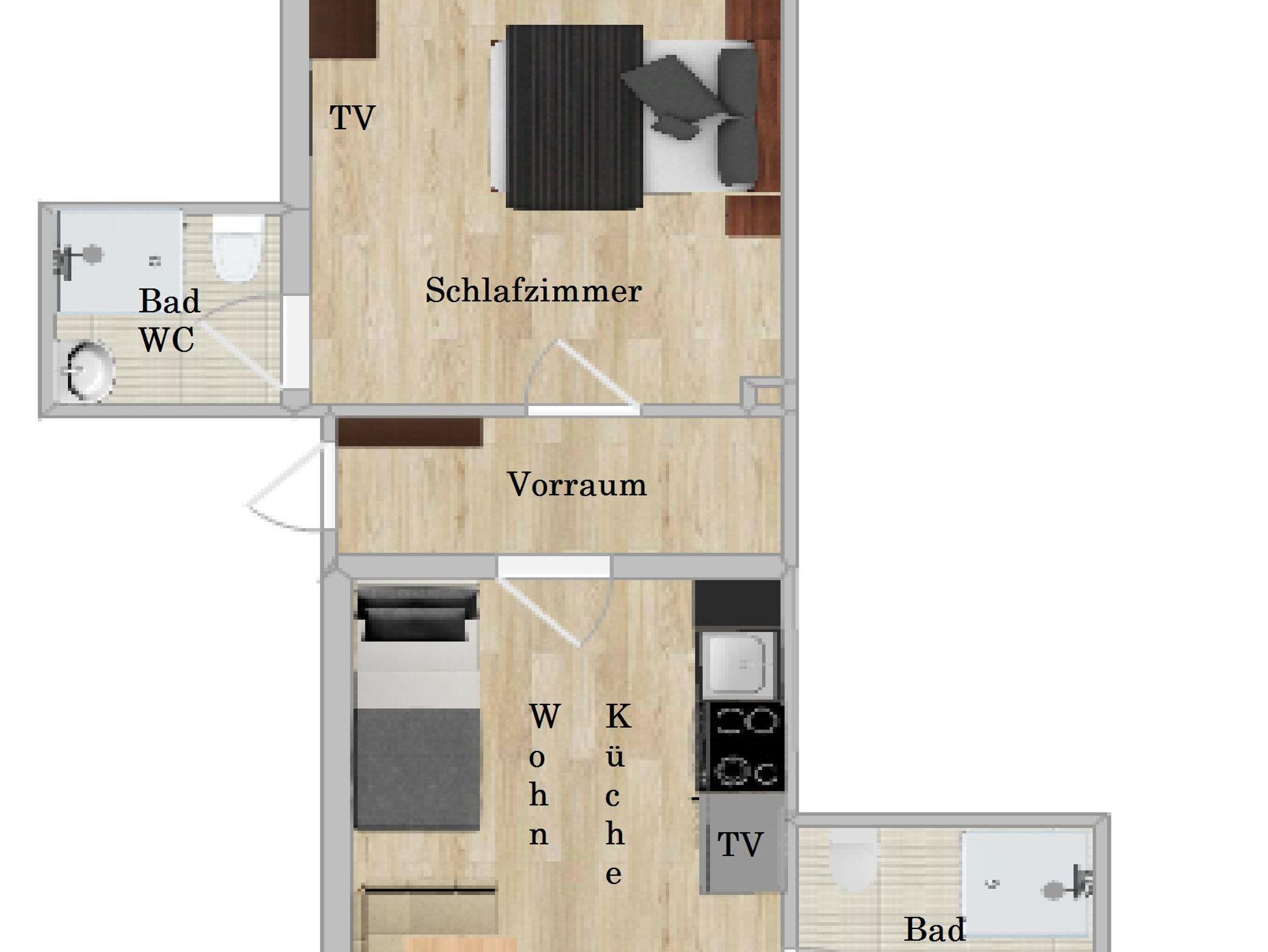 Das Bad mit DU/WC bei dem Wohnraum kann bei Bedarf, gegen Aufpreis von Euro 20,-- pro Tag exta dazu gebucht werden. Bei Buchung mit 2 Bäder wird eine Endreinigung von € 90.-- verrechnet.