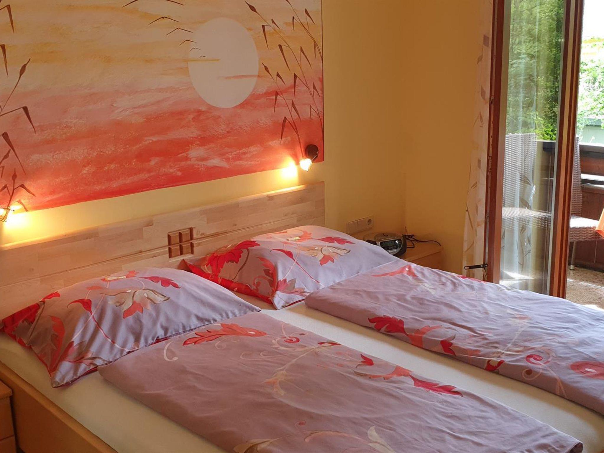 1 Schlafzimmer mit Doppelbett, und intergriertem Bad mit DU/WC, Platz für 1Kinderett gegen Aufpreis bei Bedarf von € 10,--im Schlafzimmer möglich, 1x Flat TV, Süd-Balkon, mit Gartenmöbel.