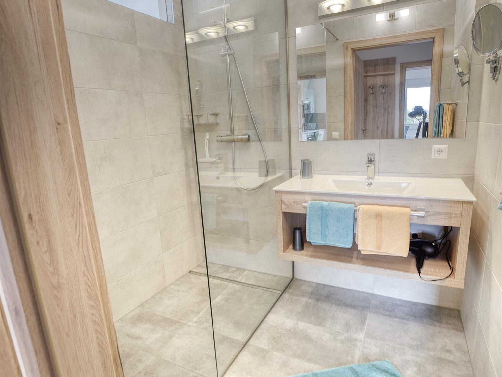 Unsere Ferienwohnungen Haus 3, sind mit 1 - 2 Schlafräumen, 1 Wohnraum, Kochnische - komplett eingerichtet, Dusche WC, Sat-TV, gratis WLAN und Balkon. Bade- und Handtücher, Bett und Tischwäsche sind vorhanden. Eigener Badestrand!