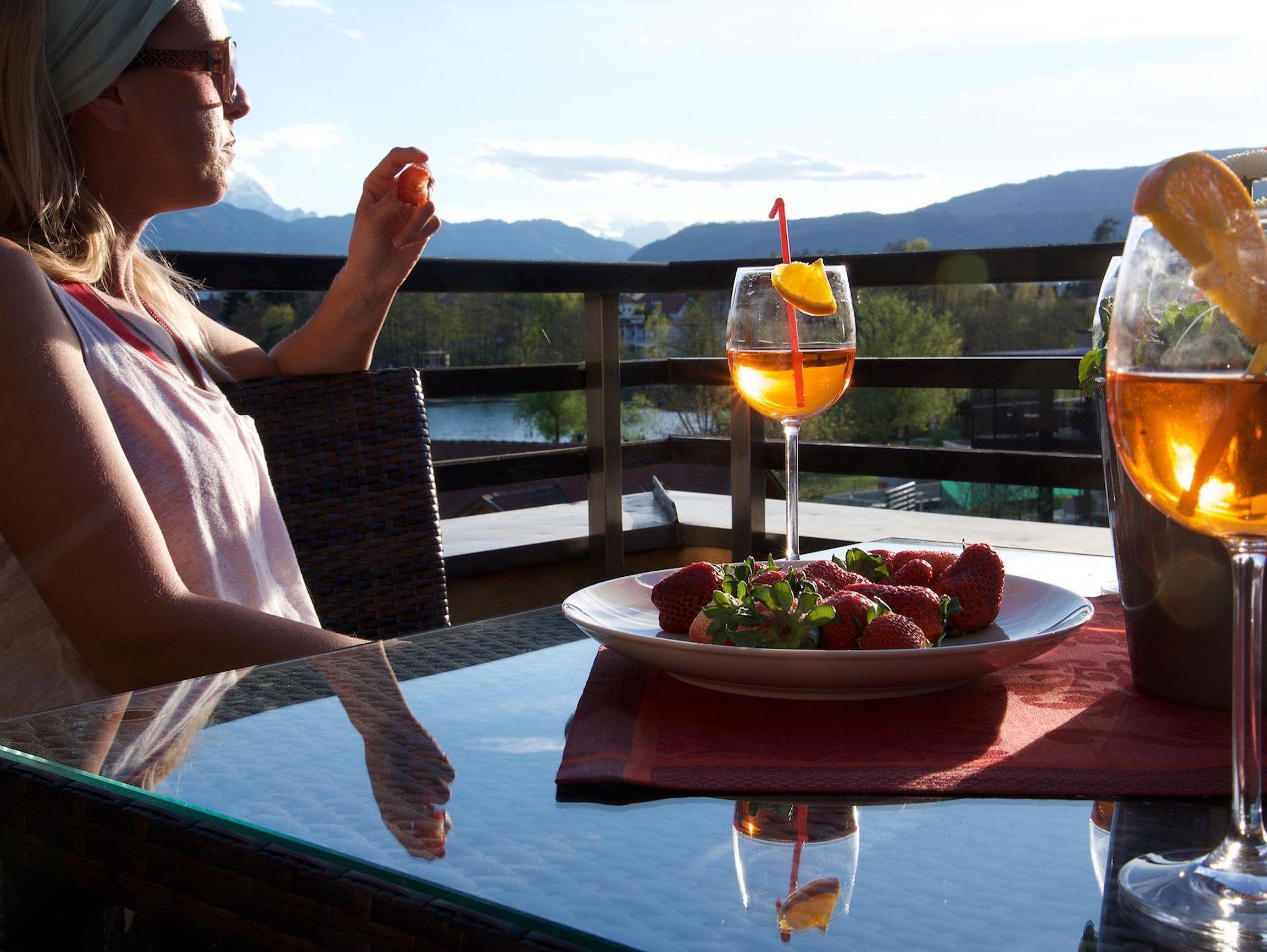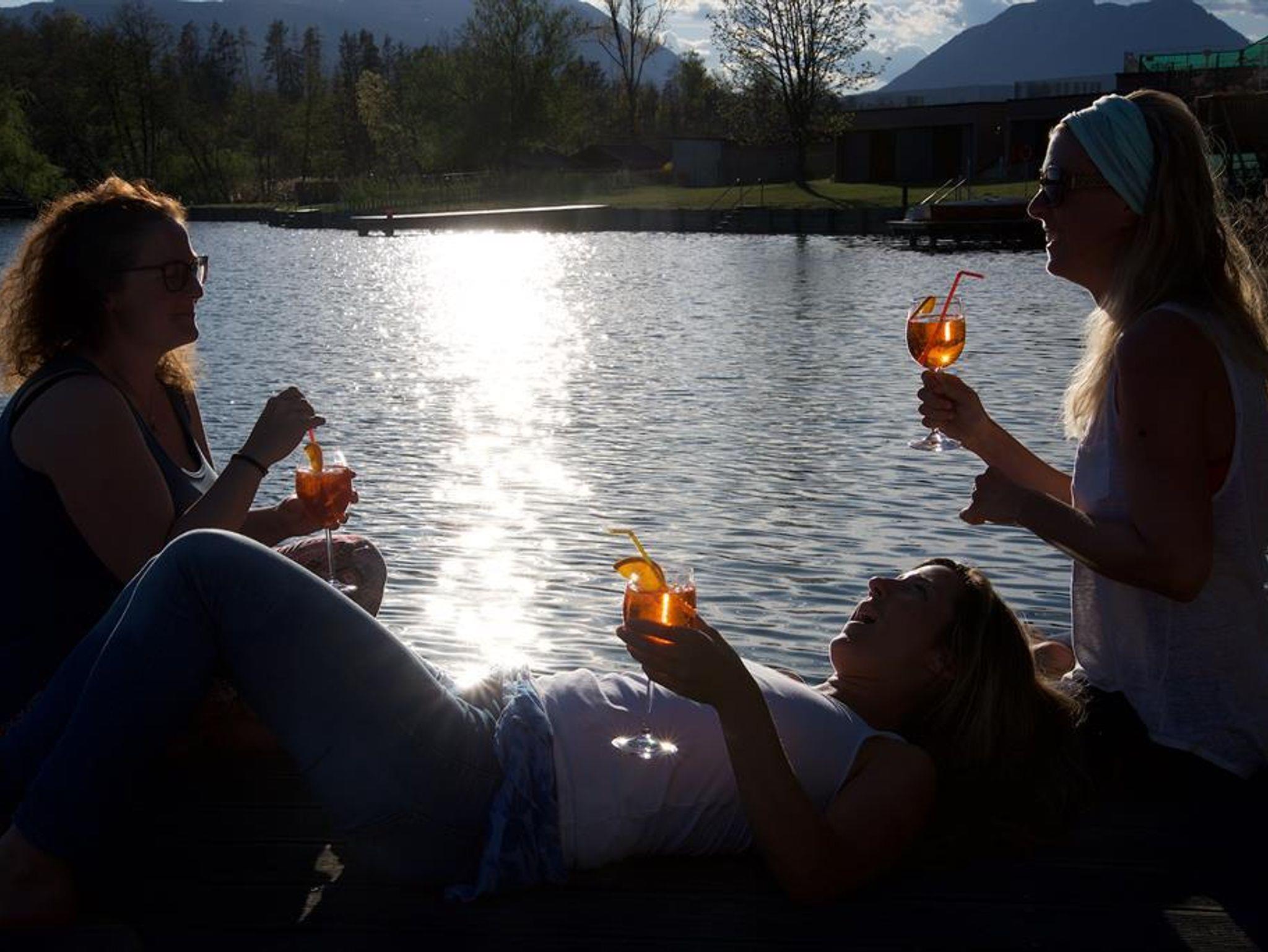 Unsere Badestrand hat einen atemberaubenden Blick auf Kärntens Bergwelt. Vielleicht läd Sie dieser Blick auf die Karawanken und die Julischen Alpen zu einer Bergwanderung ein. Anschließend erlauben bequeme Liegen mit Sonnenschirmen rasches Abschalten. Sie werden von den atemberaubenden Seestimmungen begeistert sein. Professionelle physiotherapeutische Beratung in unserem neuen Yogaraum, sowie ein Tretboot und ein Kinderspielplatz stehen für Sie bereit.