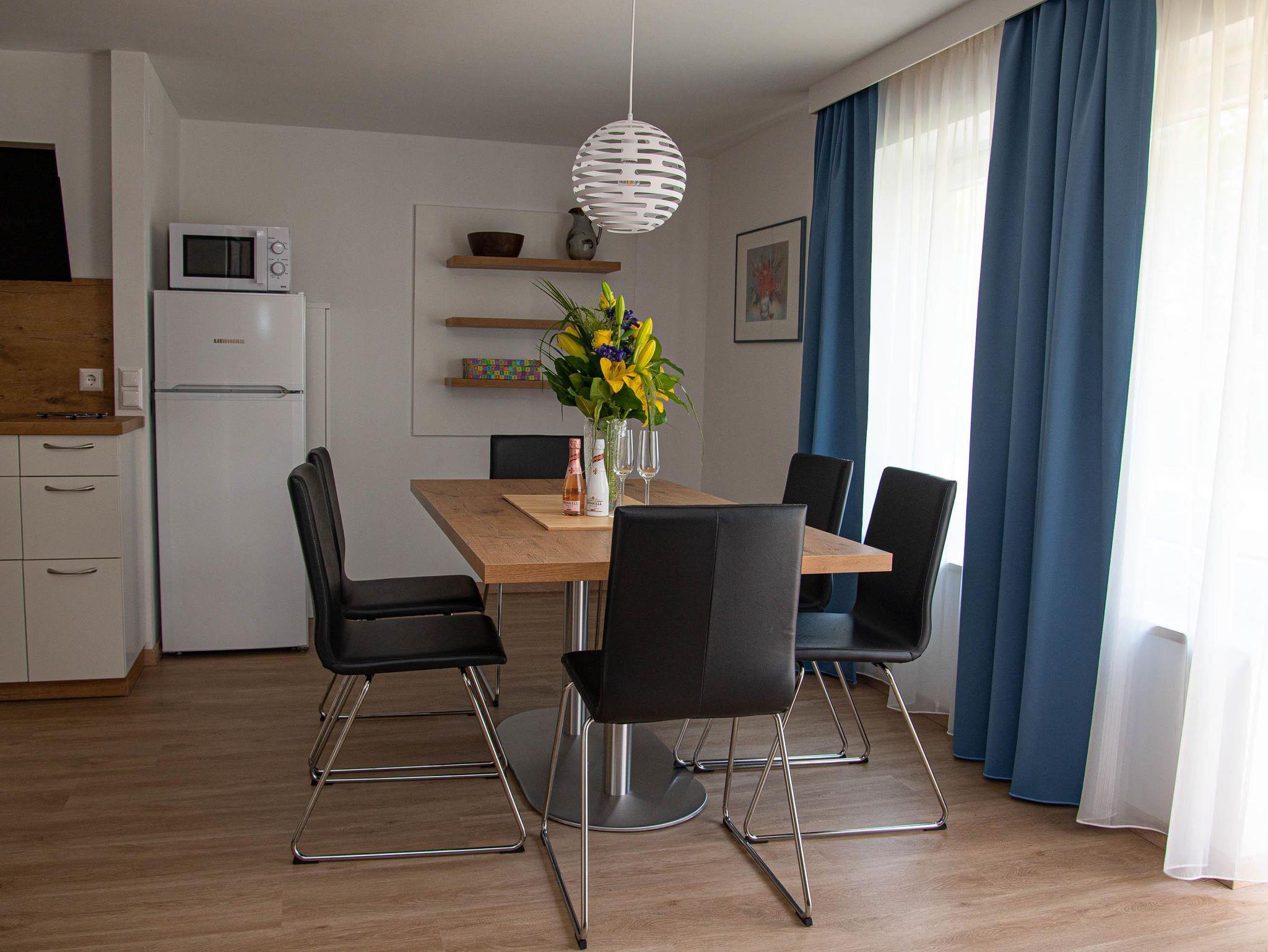 Unser Gästehaus mit 5 liebevoll eingerichteten und neu renovierten Apartments, mit Terasse oder Balkon, inmitten einer großzügigen, gepflegten Gartenanlage liegt an der sonnigen Seite des Magdalenen Sees.