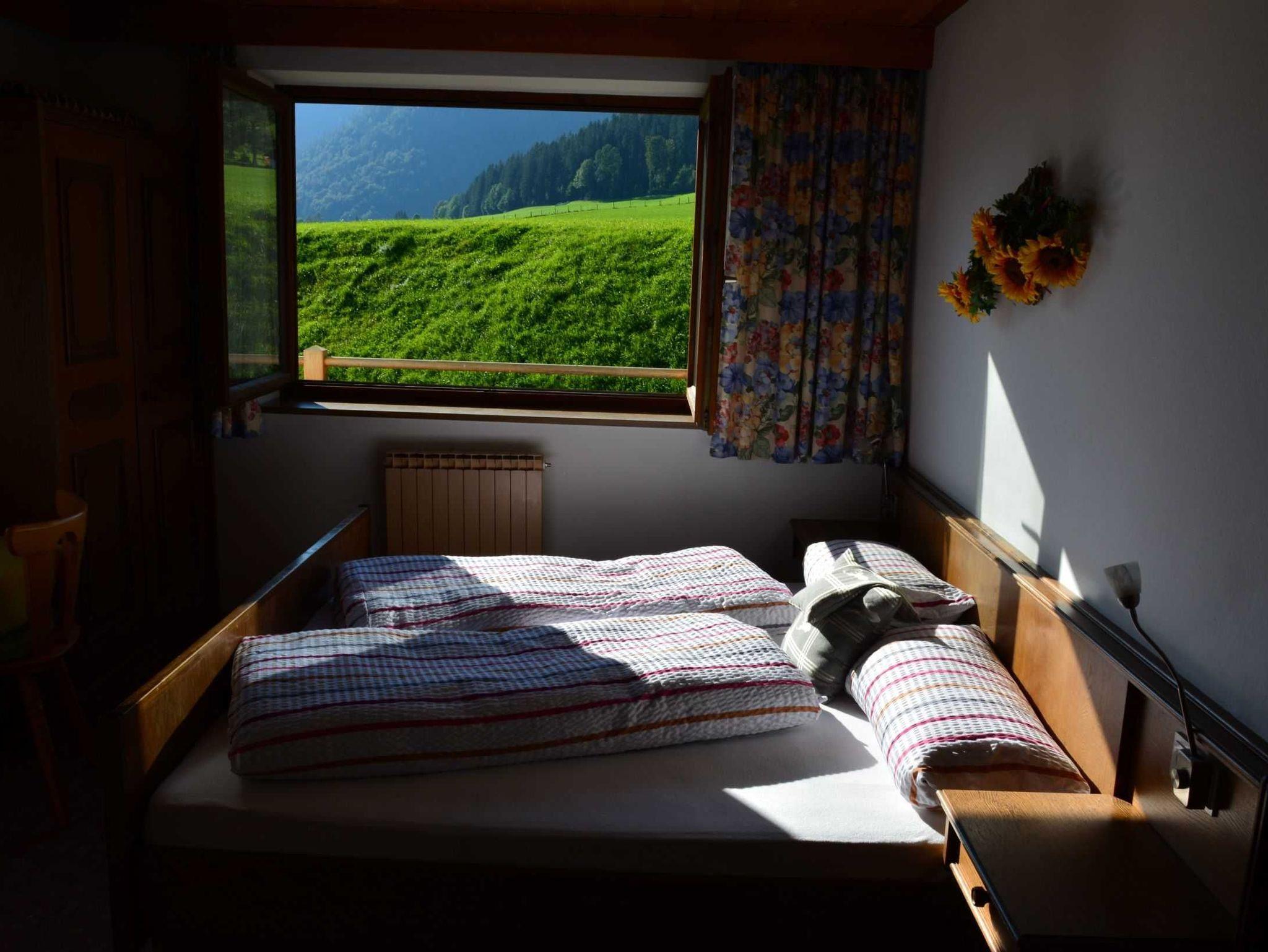 Das nette sonnige Einzelzimmer mit Dusche/WC, Handtücher, Fön, TV, Balkon und herrlichem Blick auf die umliegende Bergwelt lädt zum Entspannen und Genießen ein.