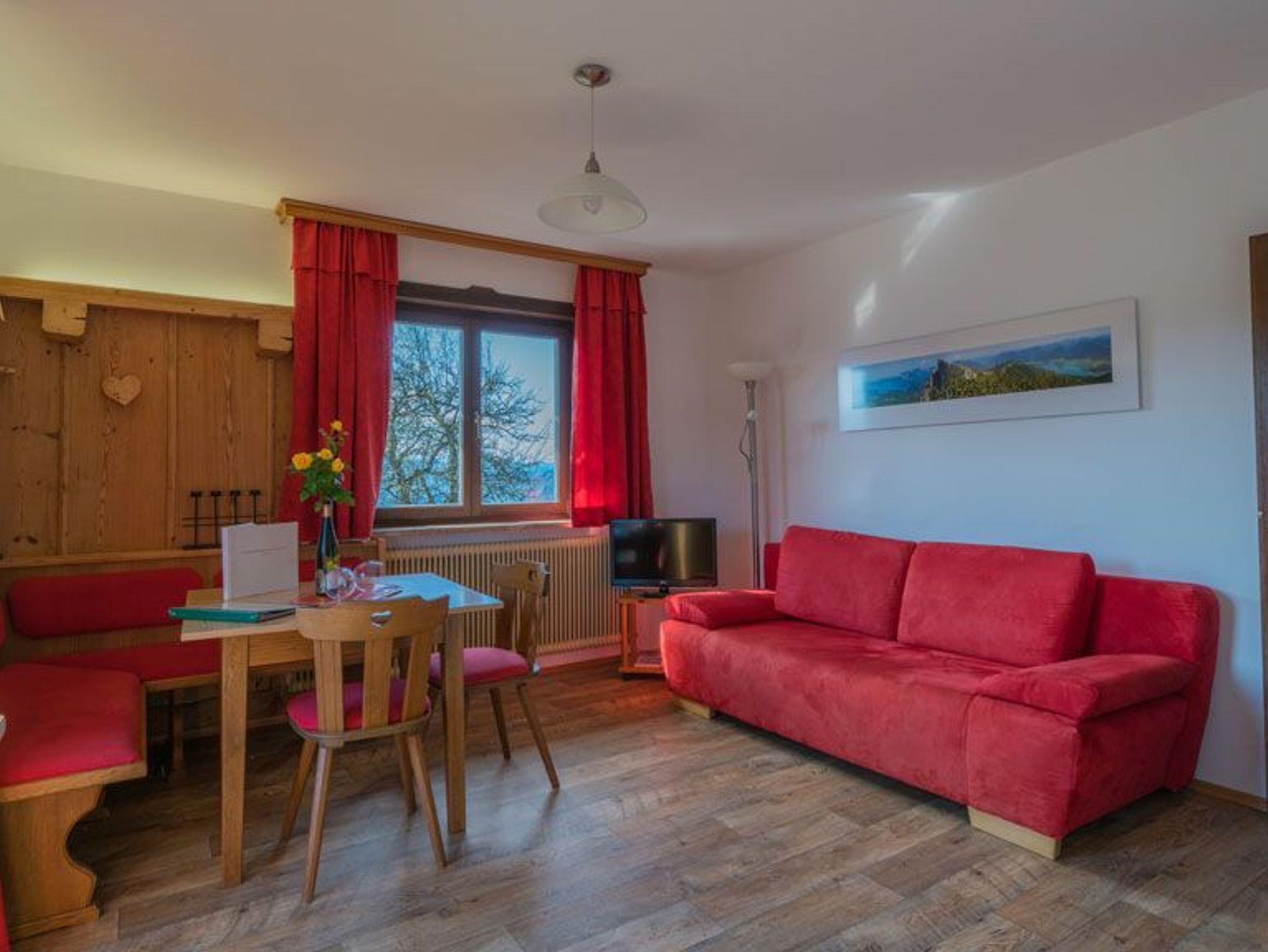 Ebenso befindet sich in der Ferienwohnung eine Sitzeckbank, um gemütlich miteinander zu speisen. Beim Frühstück die Morgensonne genießen und das Farbenspiel der traumhaften Gegend mit Blick auf das Gebirge erleben!