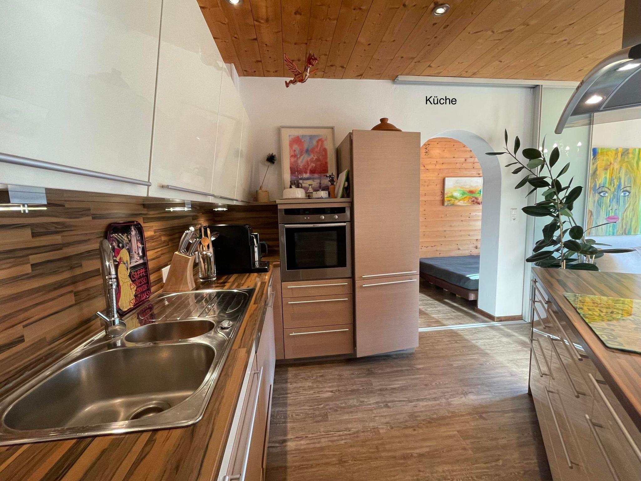 Das Chalet mit 3 Wohnebenen umfasst ein sehr großzügiges Schlafzimmer (Luxusbett 180/200 cm, Daybett 90/200 cm, TV, Infrarot-Wellness-Liege...), angrenzendes Badezimmer, ein weiteres Schlafzimmer ( Bett 160/200 cm ), ein Extra-WC, eine Wohnküche mit Kochinsel und großer Tischgruppe, Ecksofa und TV, einen Schrankraum mit Waschmaschine, Flur. Auf dem angrenzenden Balkon befindet sich auch eine große Tischgruppe. In der oberen Wohnebene befindet sich ein drittes Schlafzimmer, zwei weitere Badezimmer und ein sehr großes Wohnzimmer mit Zugang zur Dachterrasse.Der Garten incl. Außensauna ( 2 Abende pro Woche gratis ) stehen zur alleinigen Nutzung. Unter den Arkaden befindet sich der umfangreiche Fitnessbereich.Die Polsterbetten in Boxspringoptik sind mit hochwertigen Naturlatexzonenmatratzen und Naturbettwaren sowie Baumwollbettwäsche ausgestattet. In das große Schlafzimmer kann auf Wunsch ein Babybett (70/140 cm) gestellt werden. Im gesamten Haus gibt es farbenfrohe, originale Bilder.