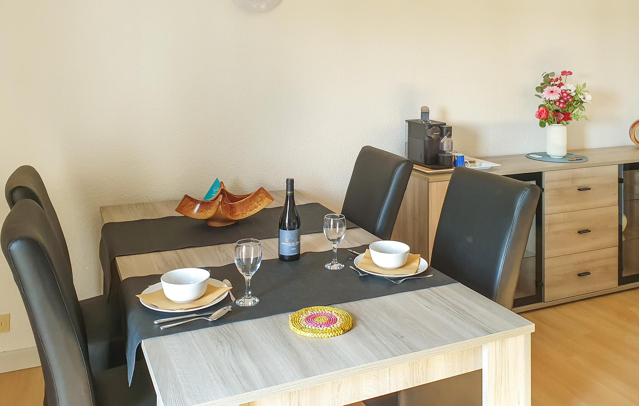Diese charmante und gemütliche Ferienwohnung eignet sich ideal, um zu zweit oder als kleine Familie eine Auszeit an der frischen Seeluft zu genießen. Bereiten Sie sich leckere Mahlzeiten in der offenen Küche zu und genießen Sie diese am einladenden Esstisch. Lassen Sie sich nach einem langen Tag auf das bequeme Sofa fallen, schauen Sie einen Film oder legen Sie für ruhige Lesestunden die Füße auf den komfortablen Sesseln hoch.