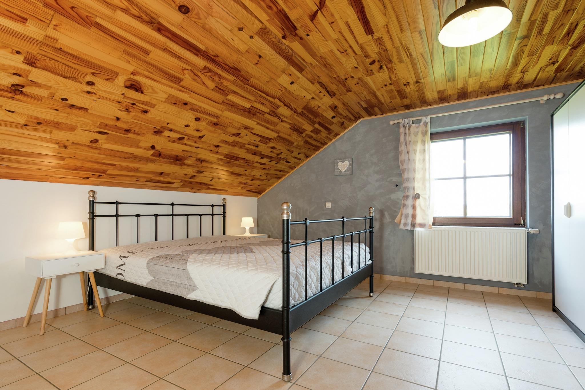 Für Ihren nächsten Ardennenurlaub bietet diese wunderschöne Villa mit 5 Schlafzimmern in der Nähe von Houffalize Platz für bis zu 9 Gäste in ruhiger, ländlicher Umgebung. Entspannen Sie in der Infrarotsauna und im großzügigen Garten. Die nahegelegene Stadt Houffalize ist weniger als 10 km entfernt und bietet über 100 km markierte Wander- und Radwege mit atemberaubendem Panoramablick. Entdecken Sie das charmante La Roche-en-Ardenne und besuchen Sie Achouffe, um das berühmte lokale Bier zu probieren. Die Villa ist hell und gepflegt und verfügt über eine sonnige Veranda mit Sitzecke, ein Spielzimmer und Parkplätze, darunter eine Garage für 1-2 Autos. Für Unterhaltung sorgen der Bouleplatz, Tischtennis, Billard und Tischfußball. Ein Hochstuhl und ein Kinderbett sind ebenfalls vorhanden.