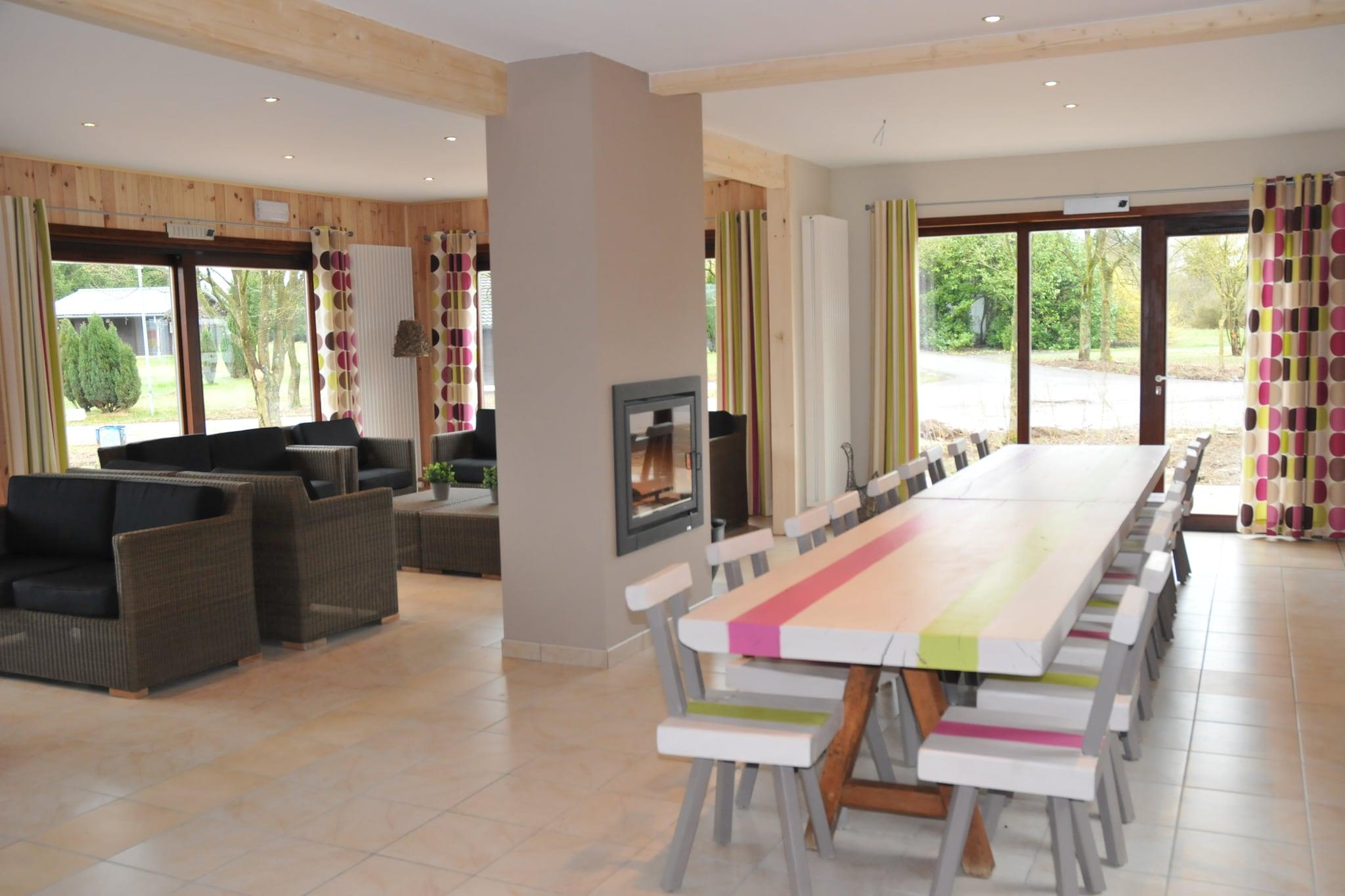 Neue Gruppenunterkunft für 18 Pers. ruhig gelegen in der Domäne 'Les Chelets du Cheneau' in Hour/Houyet, mitten im Lesse-Tal. Das Ferienchalet ist ein perfekter Ort für Familien mit Kindern. Es ist ein großes Haus, ideal für Familien, Freunde und Familien sind alle herzlich willkommen.Das Chalet liegt 20 km von der Stadt Dinant entfernt. Es ist ein ausgezeichneter Ausgangspunkt zum Wandern und Radfahren. Fahren Sie mit dem Kajak die Lesse hinunter, um ein echtes Abenteuer zu erleben. In Dinant können Sie die schöne Zitadelle bewundern, die stolz die Maas überblickt. Auch die Höhlen von Han sind einen Besuch wert, ebenso wie der schöne Zoo, ein farbenfrohes, gemütlich eingerichtetes Chalet. Sie haben auch 7 Schlafzimmer und 4 Badezimmer (1 mit Badewanne). Sauna für 3-4 Pers. Eine Waschmaschine und ein Wäschetrockner. Es hat ein großes Wohnzimmer mit einem gemütlichen Holzofen. In der amerikanischen Küche finden Sie einen separaten Essbereich. Die Terrasse, die Sie durch das Wohnzimmer erreichen, ist mit Gartenmöbeln ausgestattet. Neben dem Haus finden Sie einen kleinen Spielplatz. Sie können sich in der Sauna entspannen, während die Kinder draußen spielen.Um die Qualität dieser Immobilie zu gewährleisten, sind Studentenpartys, Junggesellenabschiede und Trinkgelage verboten. Das Haus ist hauptsächlich für Familiengruppen/Freunde gedacht.
