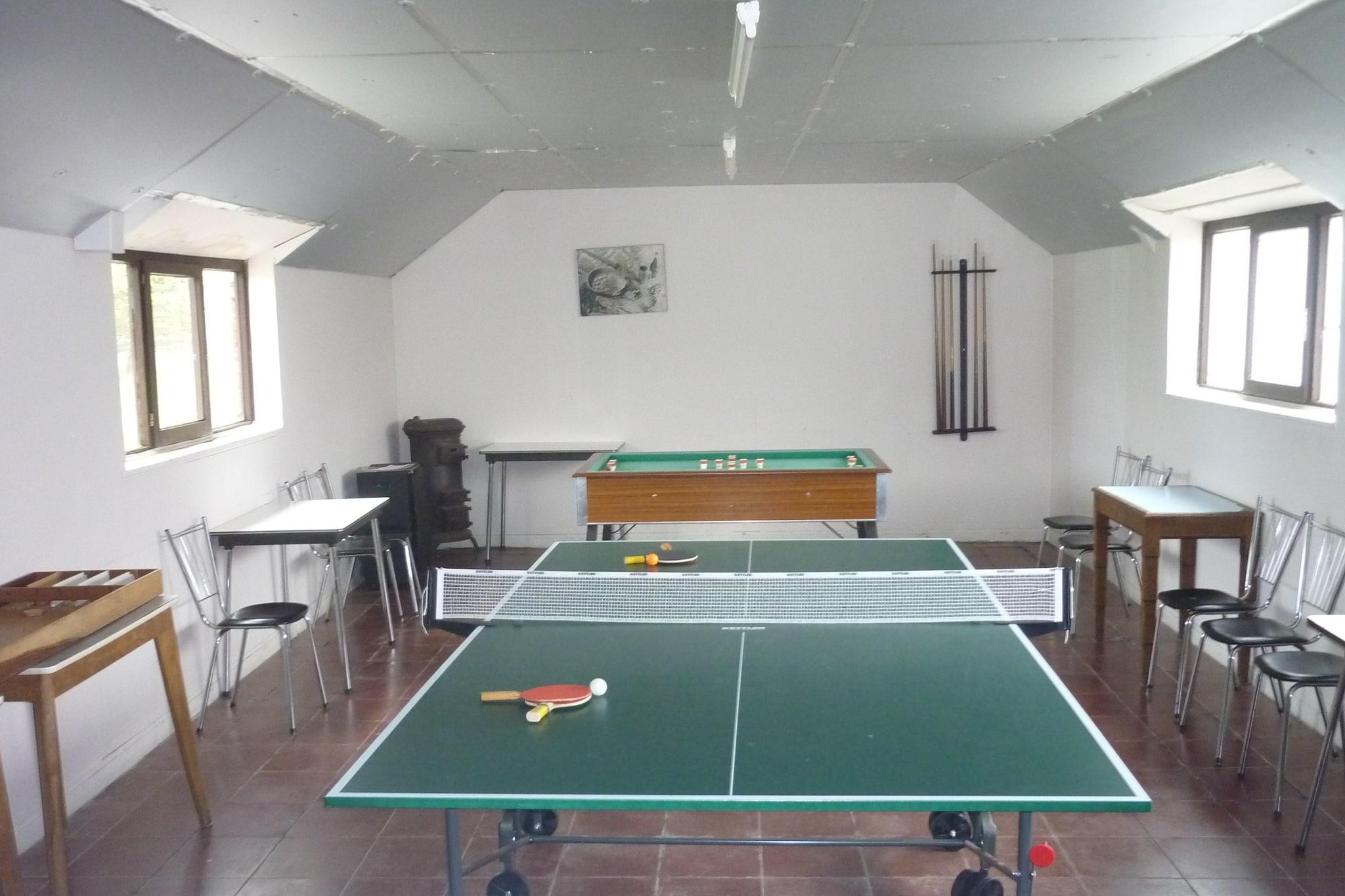 Parterre: (Eingangshalle, Wohnzimmer(TV(Kabel), CD-Spieler, Stereoanlage, 2x Hochstuhl), Küche(Kochherd(Ceranfeld), Backofen, Mikrowelle, Spülmaschine, Balkon oder Terrasse, Gartenmöbel), Schlafzimmer(Etagenbett), Schlafzimmer(Etagenbett, 2x Kinderbett), Schlafzimmer(2x Einzelklappbett , Doppelbett), Badezimmer(Dusche, Waschbecken, Toilette), Toilette, Flur, Spielzimmer(Spielgeräte, Tischtennisplatte, Billard), Spielzimmer, Saal, Abstellraum(Mikrowelle, Spülmaschine, Waschmaschine)) In der 1. Etage: (Schlafzimmer(Doppelbett), Schlafzimmer(Doppelbett), Schlafzimmer(Doppelbett), Schlafzimmer(Etagenbett), Badezimmer(Dusche, 2x Waschbecken, Toilette)) Wintergarten/Veranda, Heizung(Zentral), Terrasse(alleinige Nutzung), Garten(alleinige Nutzung, umzäunt), Gartenmöbel, Spielgeräte, Kinderbett, Hochstuhl