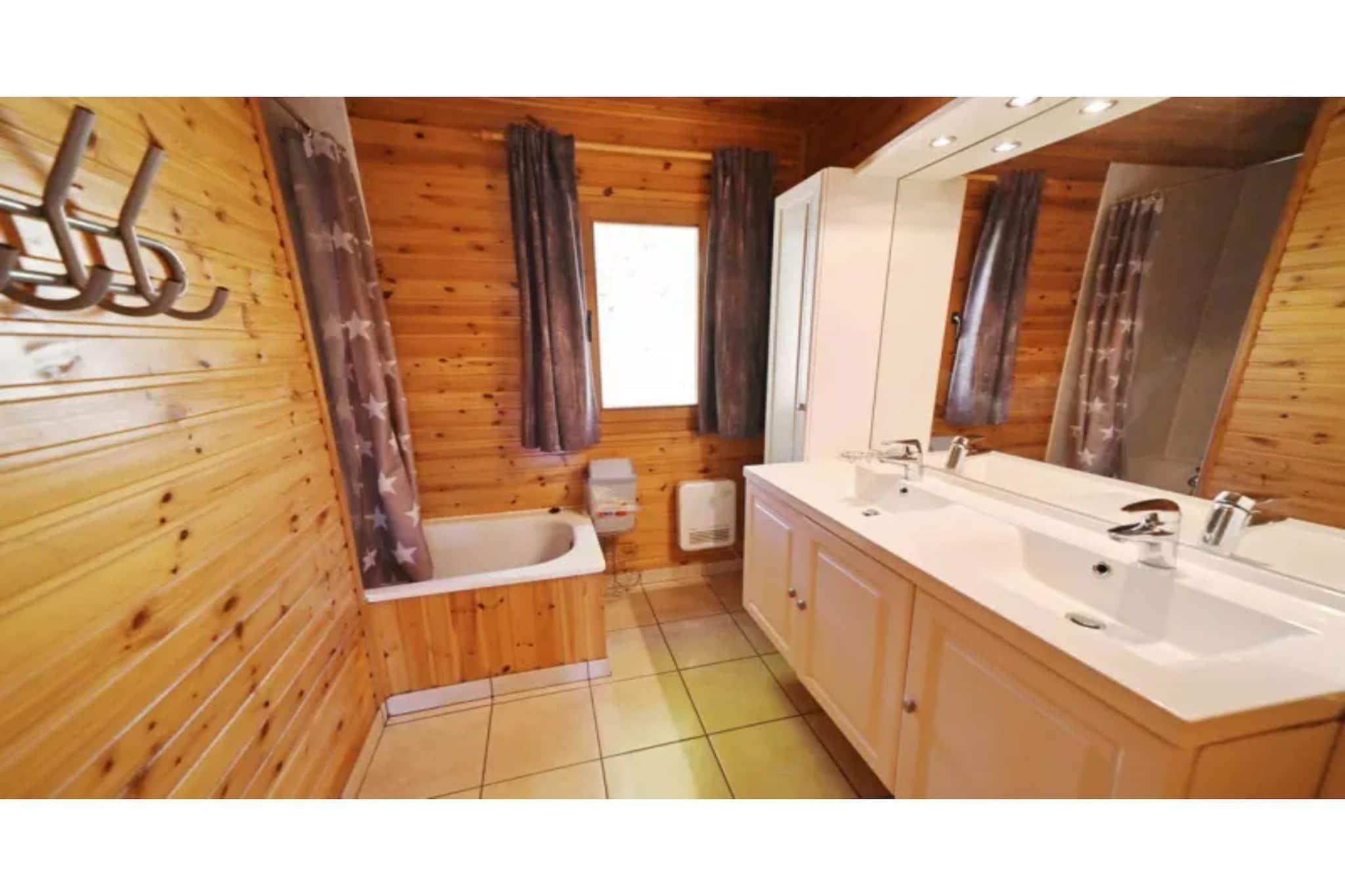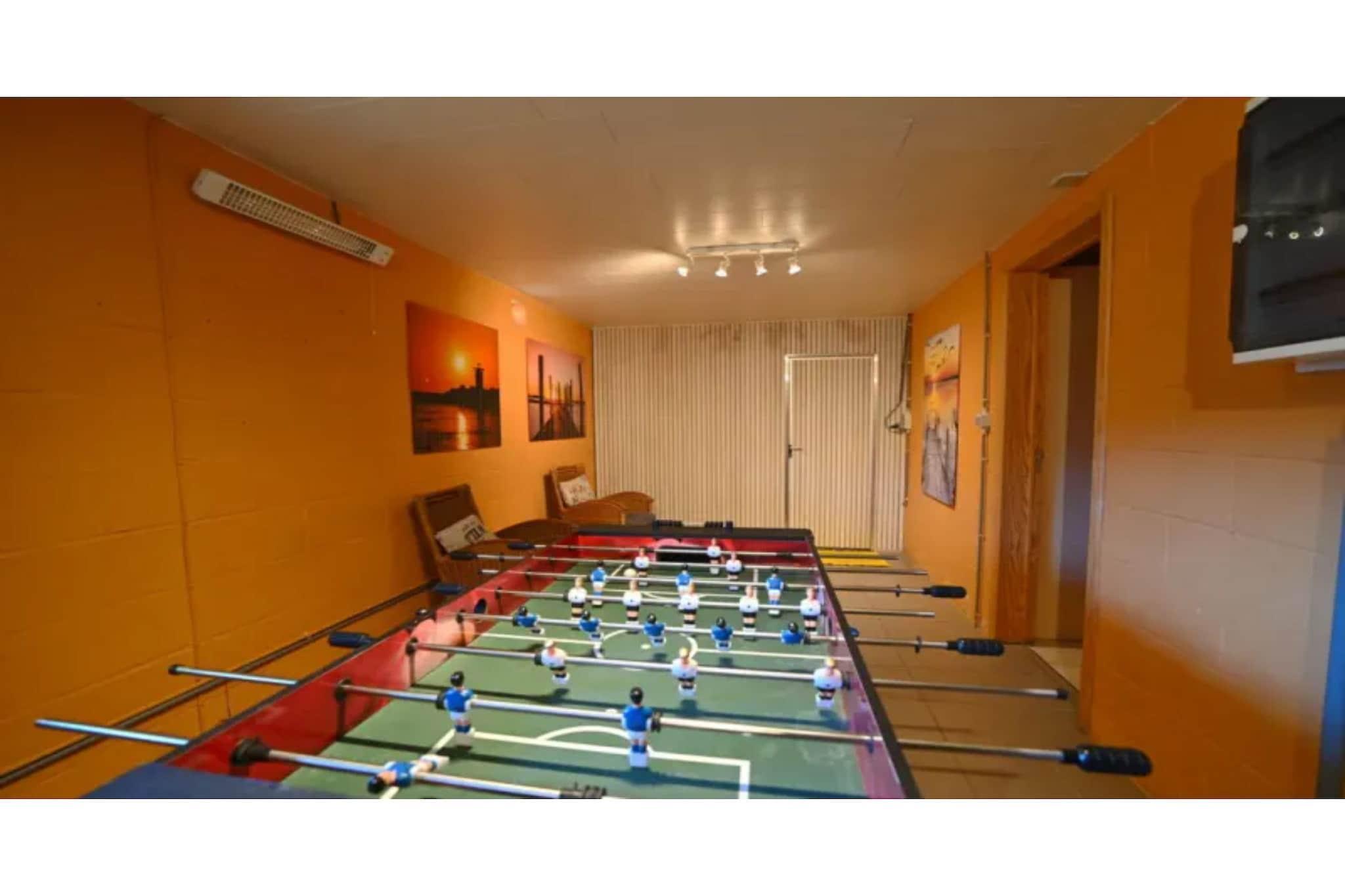Parterre: (Schlafzimmer(Doppelbett), Schlafzimmer(2x Einzelbett), Badezimmer(Dusche, Waschbecken), Toilette, Sauna) In der 1. Etage: (Wohnzimmer(TV(flatscreen), Esstisch, Sitzecke, DVD-Spieler), offene Küche(Wasserkocher, Kochherd(4 Kochplatten, elektrisch), Kaffeemaschine, Mikrowelle, Spülmaschine, Kühlschrank), Schlafzimmer(2x Einzelbett), Schlafzimmer(Etagenbett), Badezimmer(Badewanne, Waschbecken), Toilette) Garage, Heizung(elektrisch), Terrasse, Gartenmöbel, Grill, Tischfußball