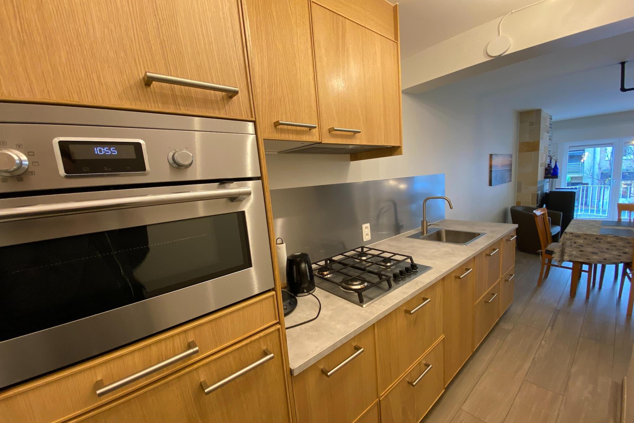 In der 1. Etage: (Küche(Kochplatte, Kombi-Mikrowelle, Spülmaschine, Kühl-/Gefrierkombination), Wohn/Esszimmer(Doppelschlafcouch(Doppelbettdecke, 140 x 200 cm), TV, Esstisch, Sitzecke), Schlafzimmer(Doppelbett(Doppelbettdecke, 160 x 200 cm)), Badezimmer(Dusche, Waschbecken), Toilette(Toilette)) Terrasse, Aufzug