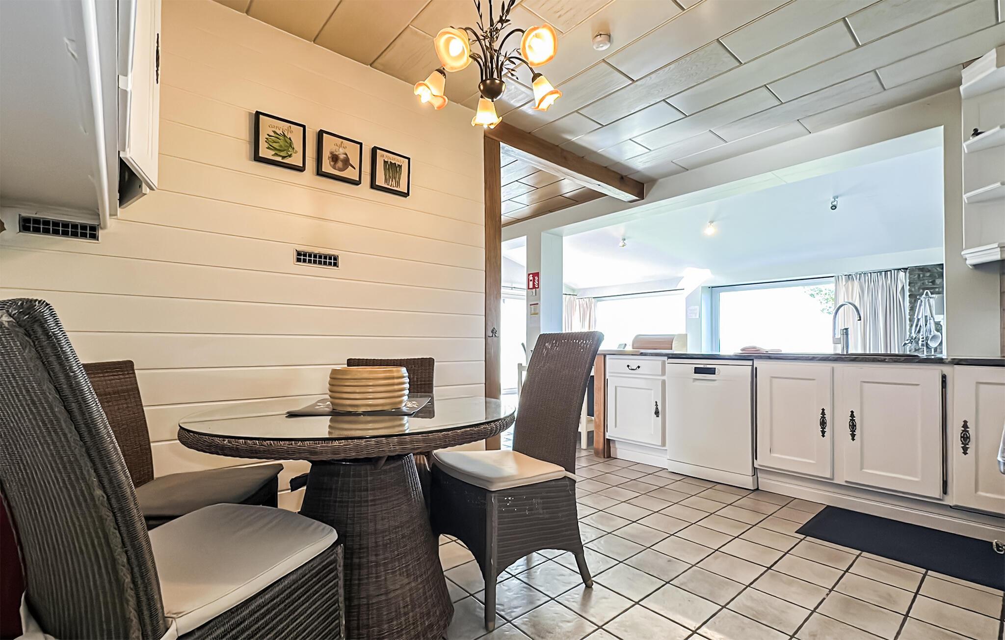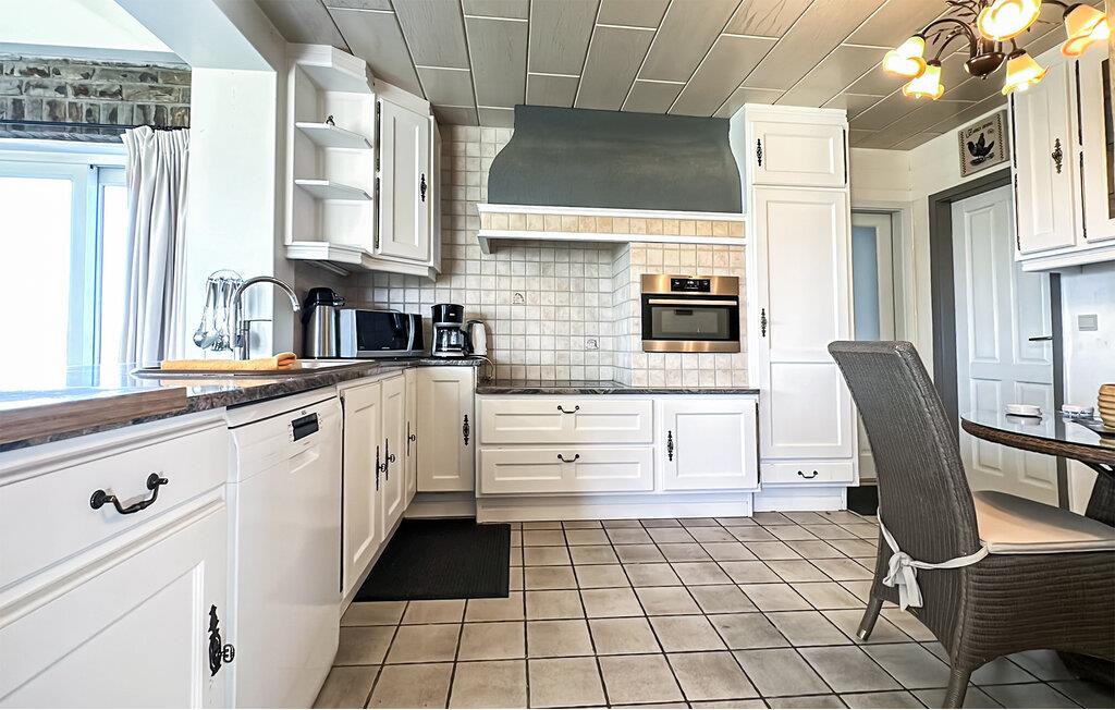 Lassen Sie den Blick durch die großen Fenster in die weite Landschaft schweifen. Der helle Wohnbereich ist offen gestaltet und bietet viel Platz für gemeinsame Stunden. Machen Sie es sich auf den Sofas bequem und genießen Sie die Aussicht oder setzen Sie sich an den Esstisch und planen Sie in ruhiger Atmosphäre Ihre nächsten Ausflüge. Die angrenzende Küche bietet ausreichend Platz zum Kochen. Ziehen Sie sich anschließend in die Sauna zurück und gönnen Sie sich nach einem aktiven Tag eine entspannte Pause.