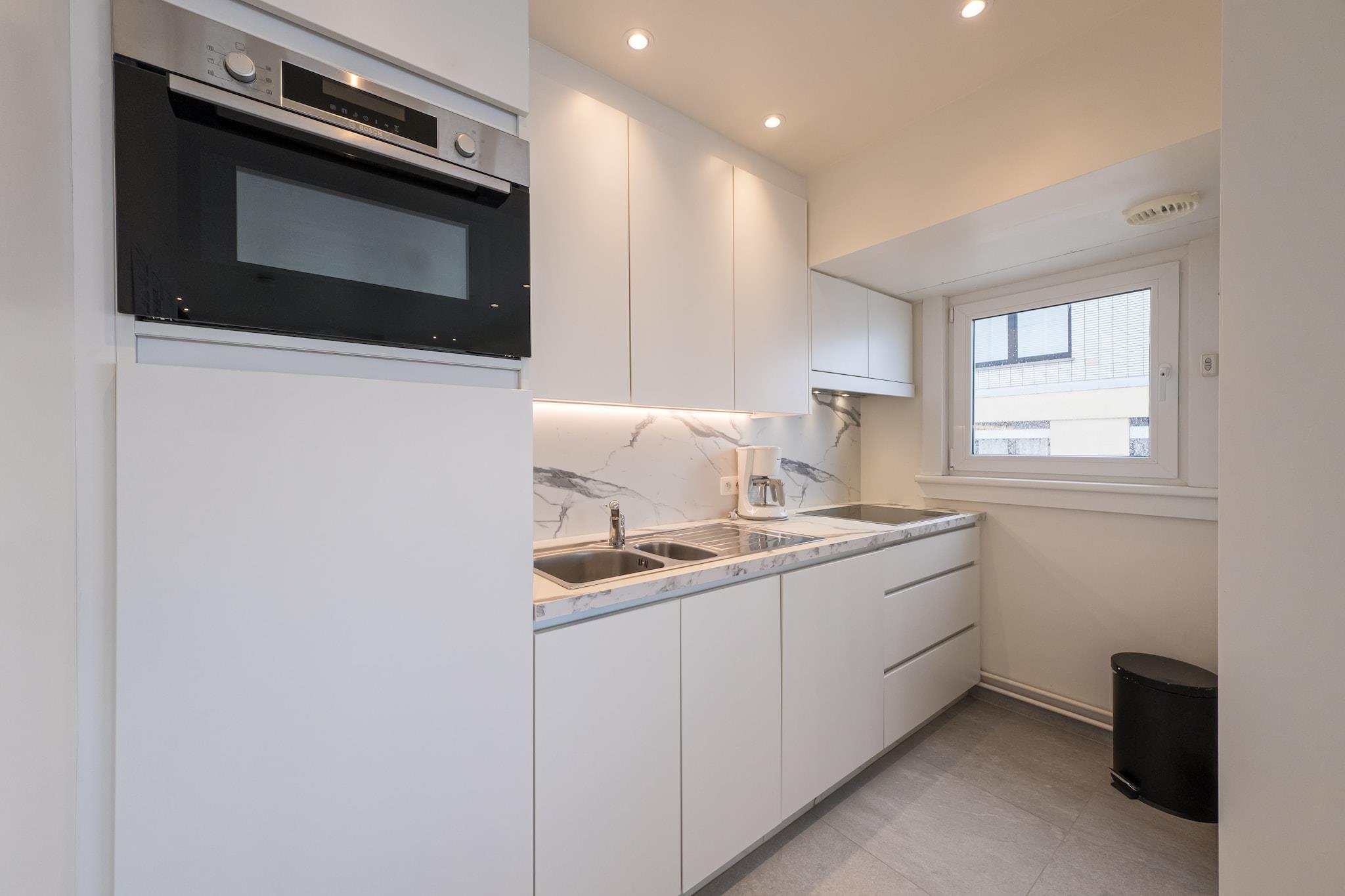 Dieses Eckapartment im 6. Stock ist perfekt für einen komfortablen Aufenthalt mit Meerblick. Es verfügt über zwei Schlafzimmer – eines mit Doppelbett und eines mit Etagenbett und Einzelbett – ideal für Familien oder Gruppen bis zu 5 Personen. Das geräumige, helle Wohnzimmer bietet direkten Meerblick und eine vollständig renovierte offene Küche, perfekt zum Kochen und gemeinsamen Genießen. Es gibt ein Badezimmer mit begehbarer Dusche, einen Abstellraum mit Waschmaschine und eine schöne Terrasse mit Meerblick zum Entspannen. Das zweite Schlafzimmer mit Etagenbett und zusätzlichem Einzelbett macht den Aufenthalt ideal für die ganze Familie. Dieses moderne Neubauapartment bietet viel Platz und Komfort für einen entspannten Urlaub. Wichtig: Rauchen ist im Apartment nicht erlaubt, jedoch auf der Terrasse möglich. Wifi: ja - Parkplatz: nicht enthalten - Bettwäsche: selbst mitbringen - Handtücher: selbst mitbringen.