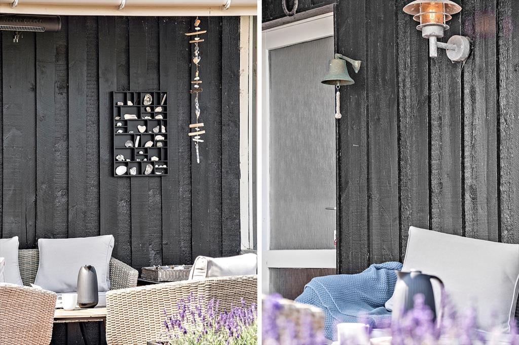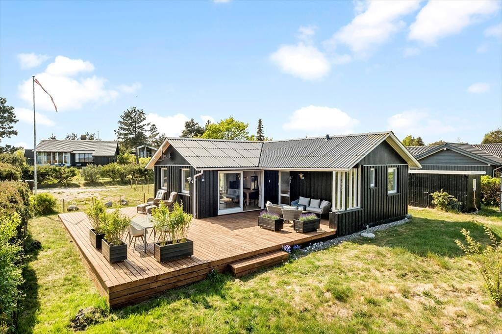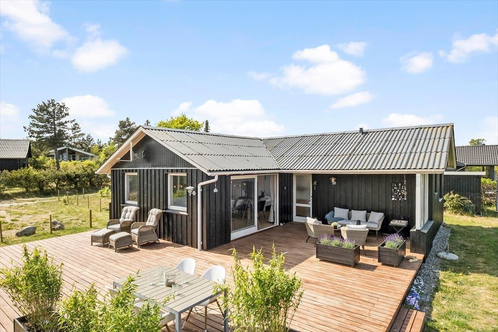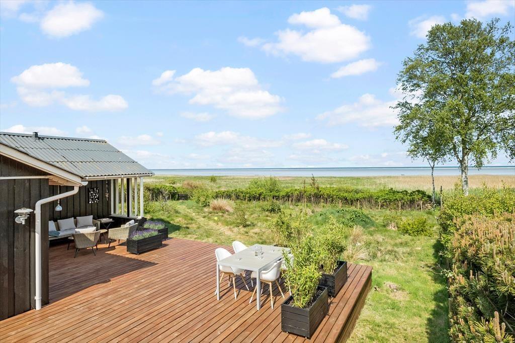 Das Haus verfügt über zwei Terrassen: eine große und geschlossene Terrasse mit Blick über das Kattegat und eine überdachte und sehr gemütliche hinter dem Haus, auf der die Kohle im Grill angezündet wird und die lauen Sommernächte entspannt werden können. Hier sind ebenfalls Sandkasten für die Kleinsten Urlaubsgäste vorhanden.