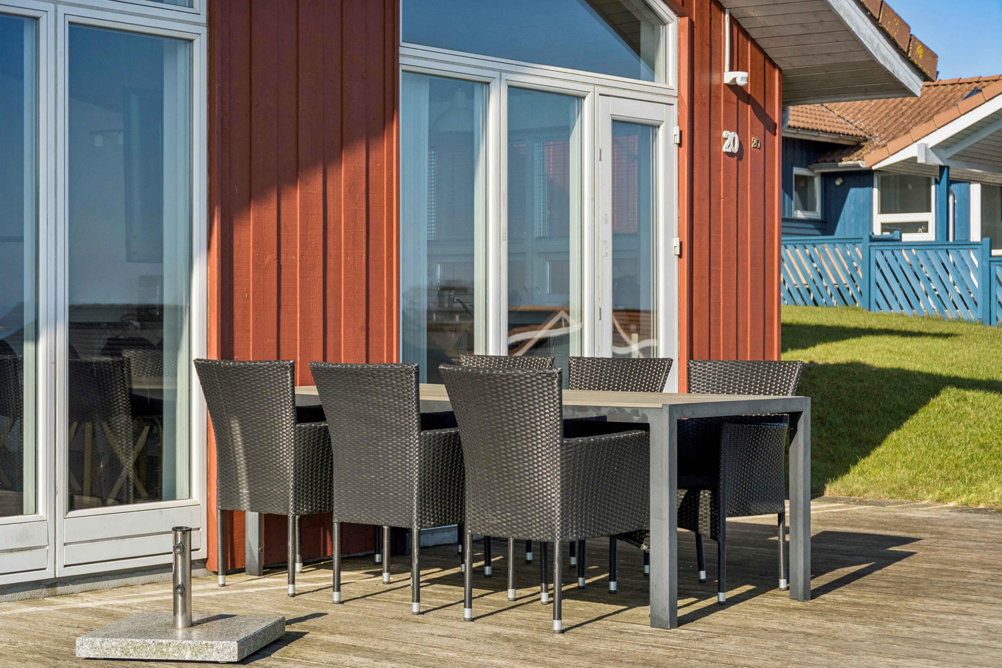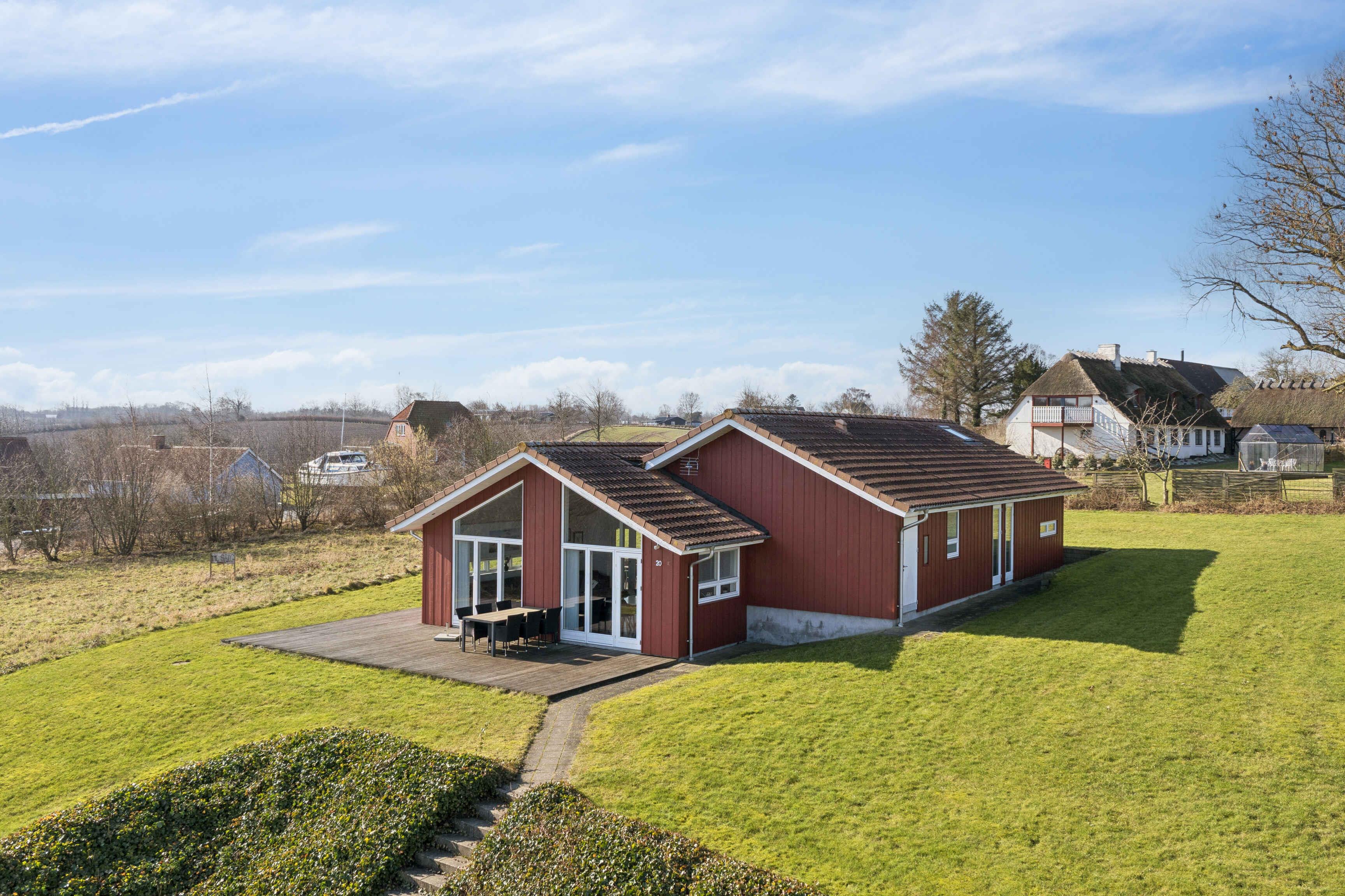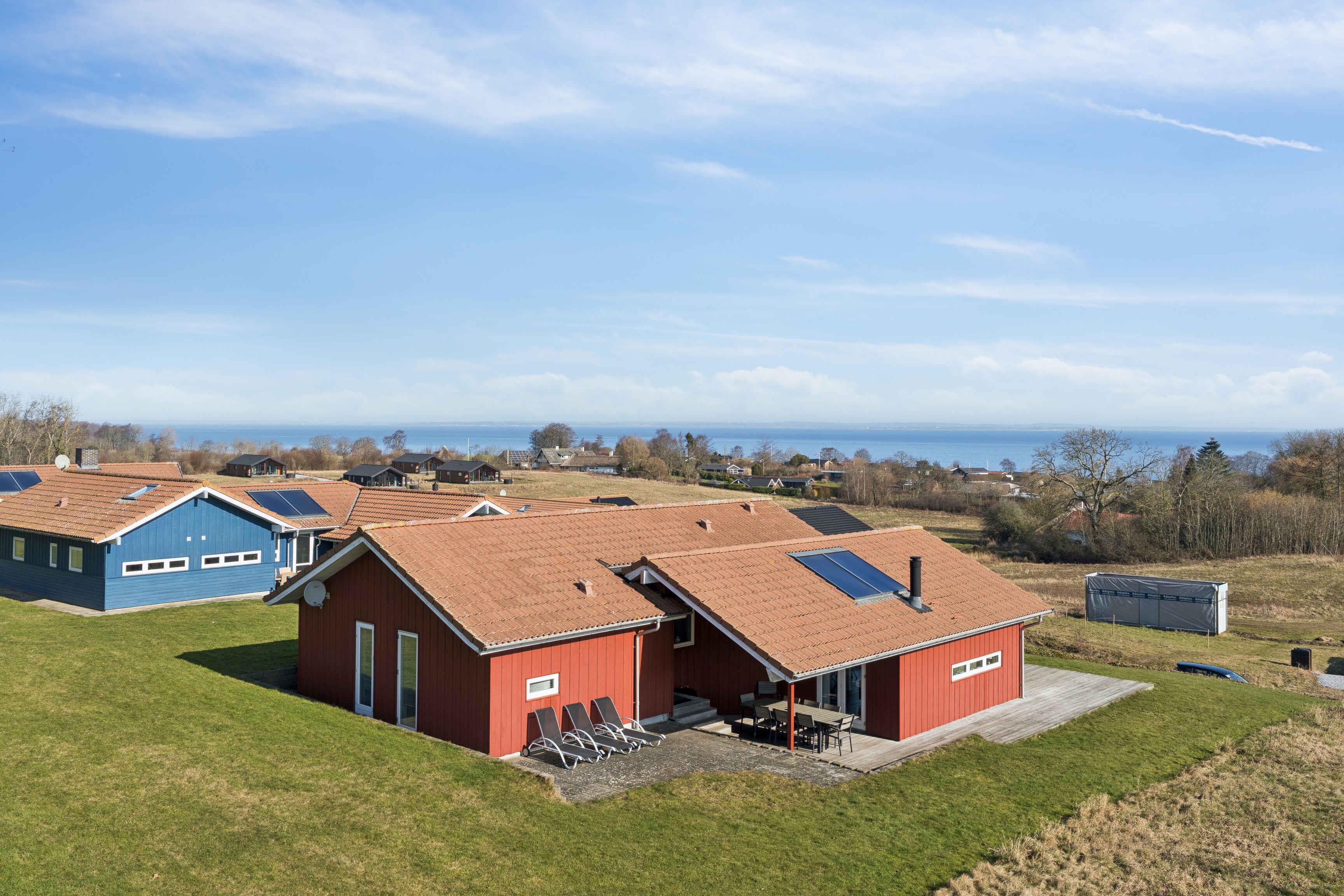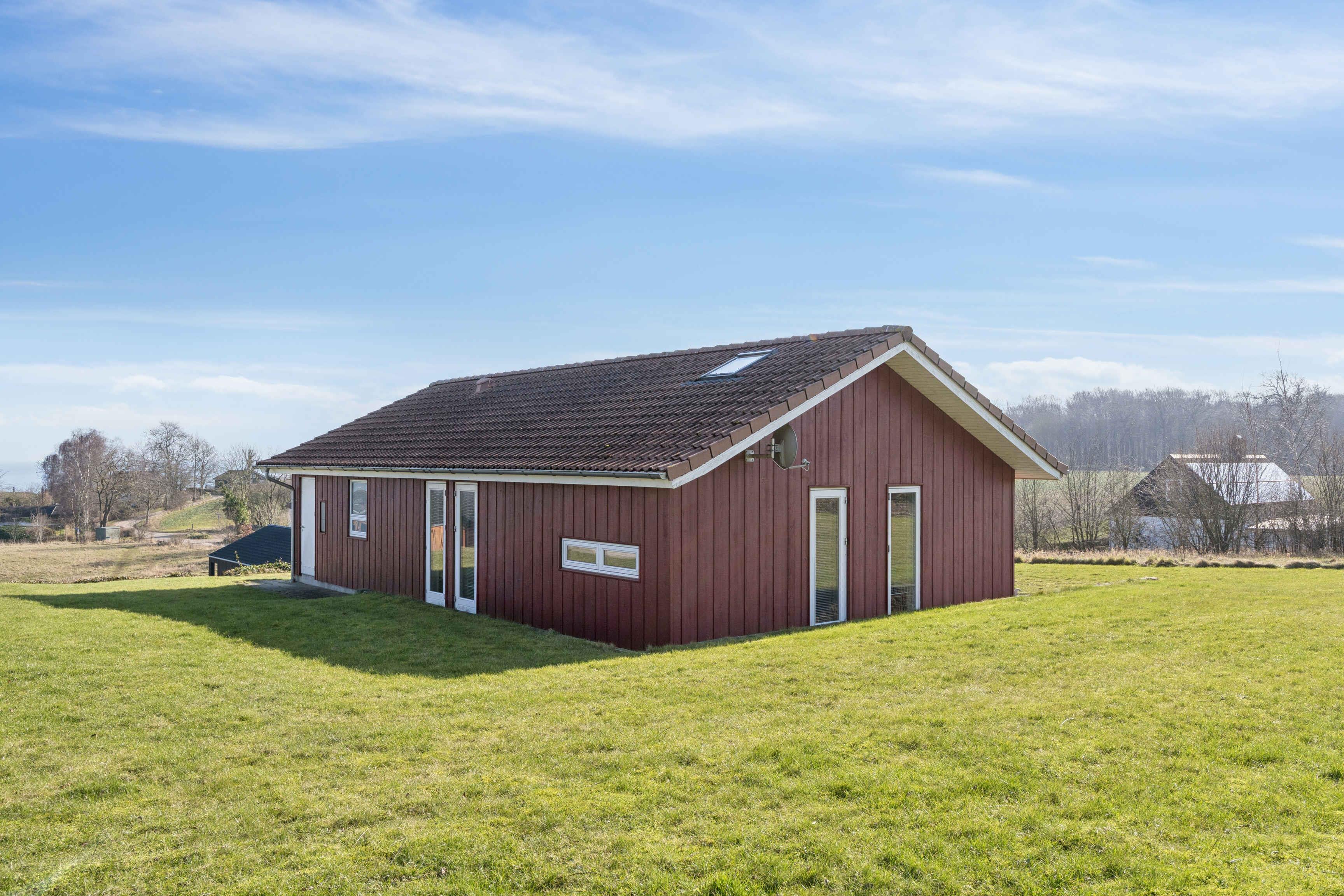 Ferienhaus mit Meerblick vom Haus und vom Grundstück, gelegen in einem ruhigen Feriengebiet. Das Haus liegt nicht weit von einem Kiesstrand entfernt und ca. 1.500 m von einem Sandstrand. Das Ferienhaus ist für 10 Personen geeignet, hat eine Wohnfläche von 122 m² und wurde 2010 erbaut. Es dürfen 2 Haustiere mitgebracht werden. Solaranlage vorhanden. Fußbodenheizung im gesamten Haus. Waschmaschine und Trockner stehen zur Verfügung. Gefrierkapazität 50 Liter. Außerdem gibt es einen Kaminofen. Für Kinder ist 1 Hochstuhl vorhanden. Das Ferienhaus liegt auf einem 990 m² großen Naturgrundstück. Entfernung zum Meer: 600 m. Der nächste Einkaufsladen ist 4.000 m entfernt. Ein Golfplatz befindet sich in 6.000 m Entfernung. Zum Haus gehören eine offene Terrasse sowie eine überdachte Terrasse. Grill vorhanden. Parkplatz am Haus. Es gibt insgesamt 4 Schlafzimmer. Die Schlafplätze verteilen sich auf 8 Schlafplätze in Doppelbetten und 2 Schlafplätze auf Matratzen, davon 2 auf dem Hausboden (Hems). Zusätzlich steht 1 Kinderbett zur Verfügung. Die Küche ist ausgestattet mit Kühlschrank, 4 Cerankochfeldern, Umluftofen, Mikrowelle und Geschirrspüler. Es gibt 2 Badezimmer mit Dusche und 2 Toiletten. Fußbodenheizung in beiden Badezimmern. Zur Entspannung steht ein Indoor-Whirlpool für 2 Personen zur Verfügung. Im Ferienhaus gibt es 1 Fernseher mit 1–3 dänischen und 1–3 deutschen Sendern. WLAN ist vorhanden.