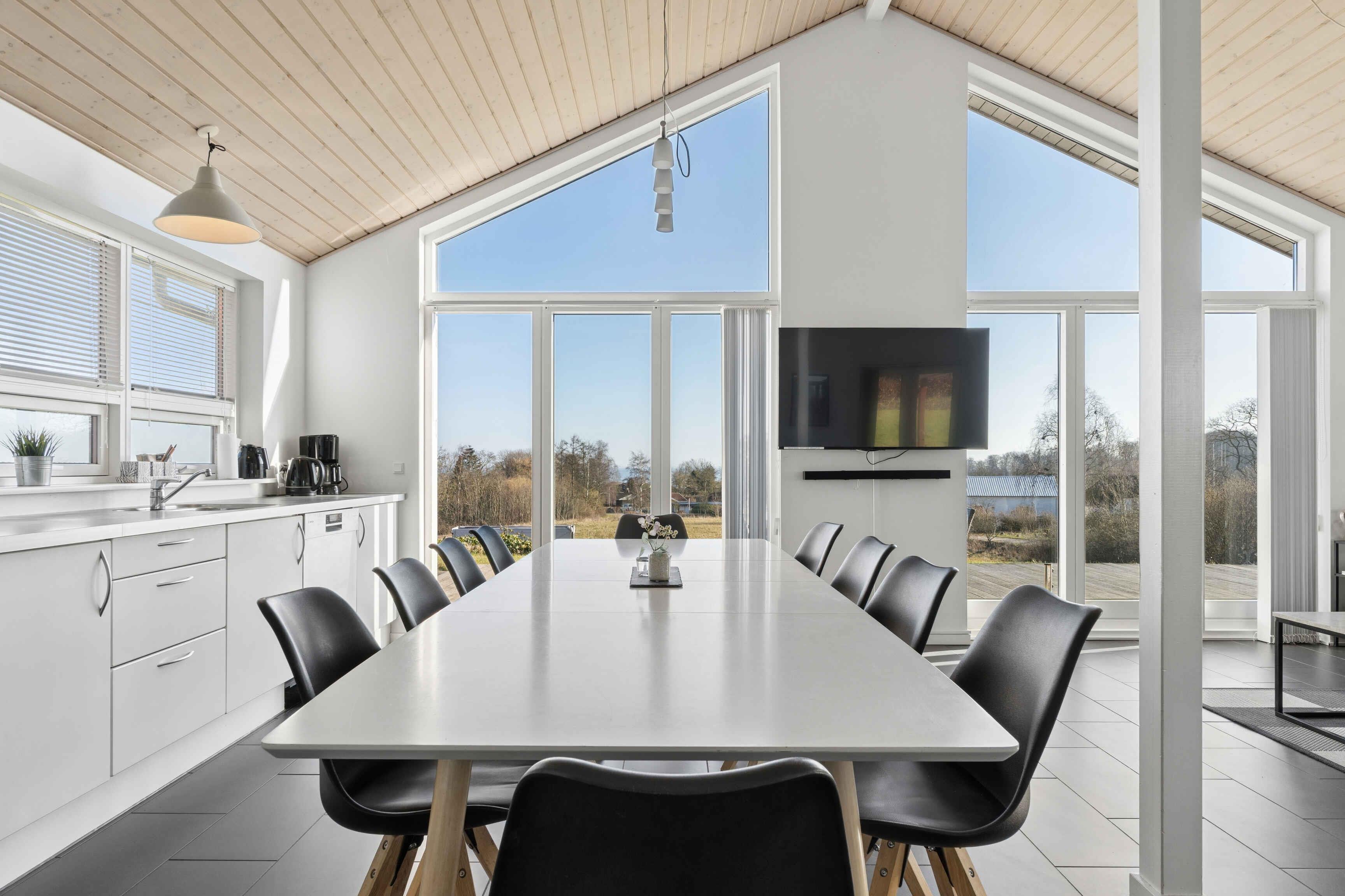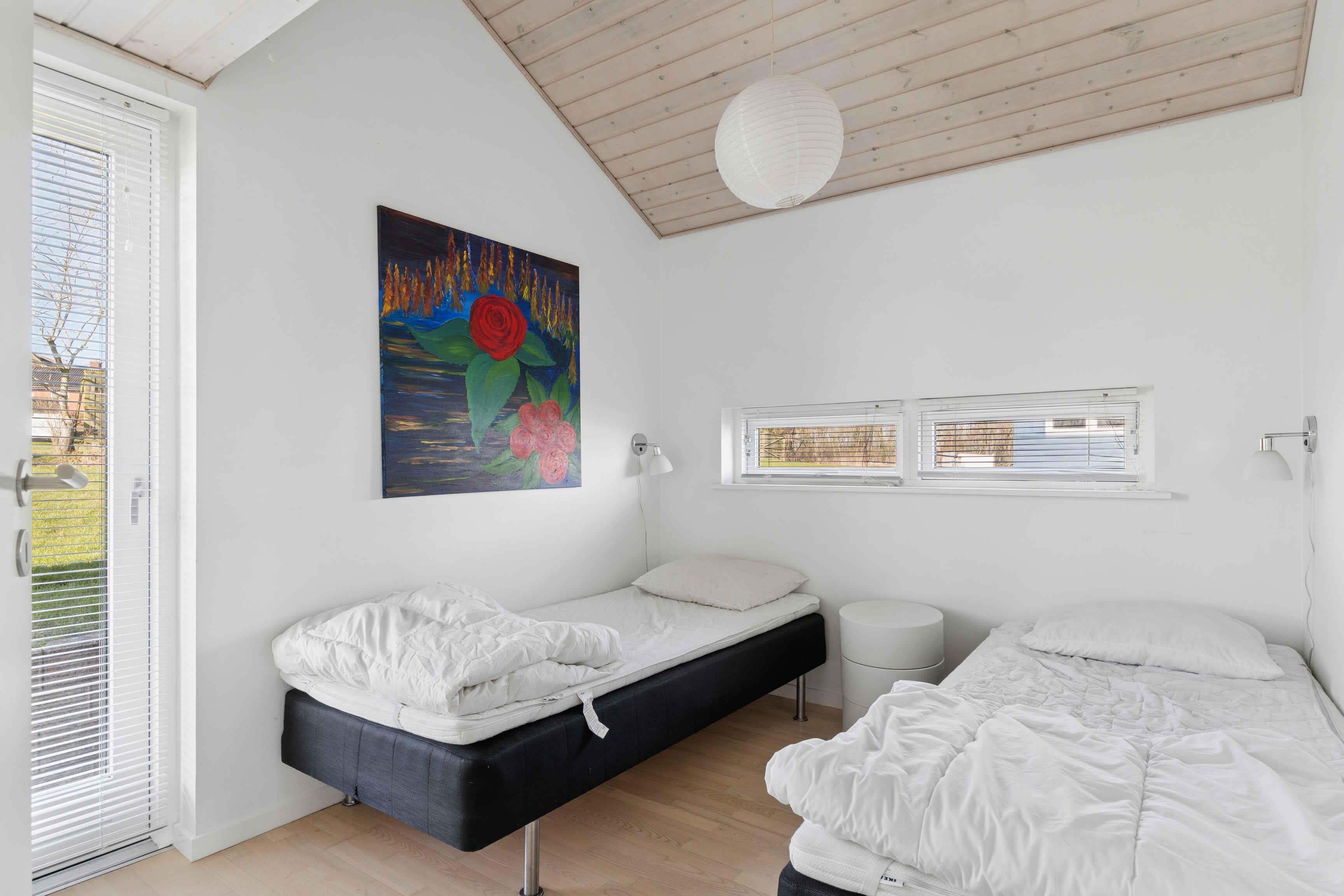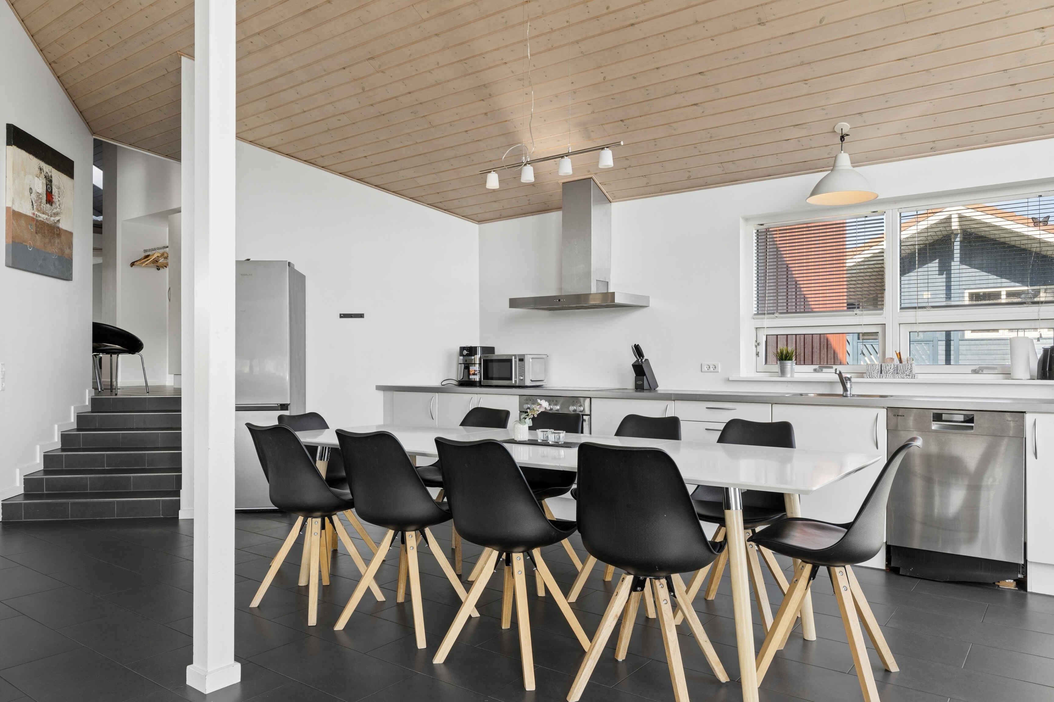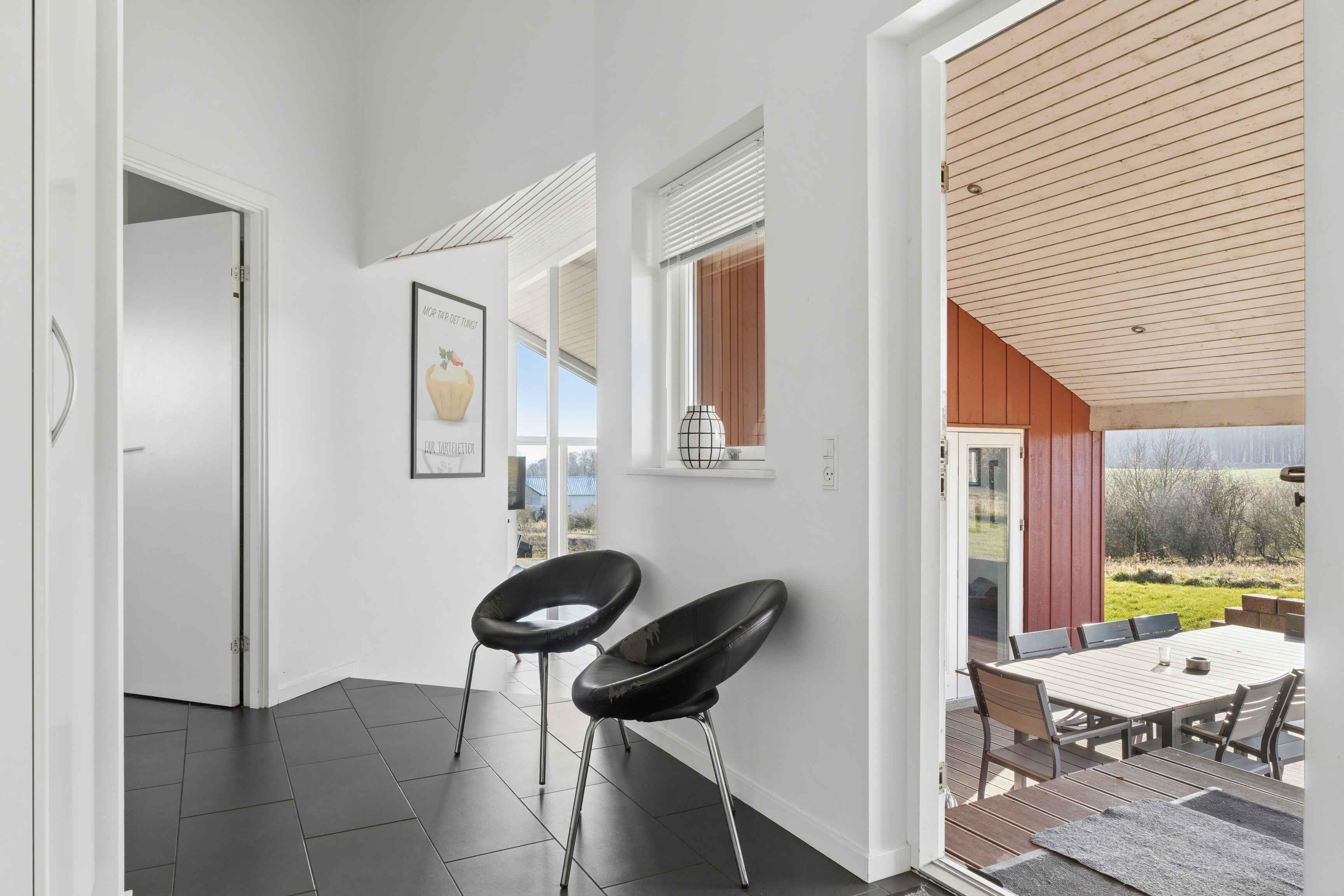 Ferienhaus mit Meerblick vom Haus und vom Grundstück, gelegen in einem ruhigen Feriengebiet. Das Haus liegt nicht weit von einem Kiesstrand entfernt und ca. 1.500 m von einem Sandstrand. Das Ferienhaus ist für 10 Personen geeignet, hat eine Wohnfläche von 122 m² und wurde 2010 erbaut. Es dürfen 2 Haustiere mitgebracht werden. Solaranlage vorhanden. Fußbodenheizung im gesamten Haus. Waschmaschine und Trockner stehen zur Verfügung. Gefrierkapazität 50 Liter. Außerdem gibt es einen Kaminofen. Für Kinder ist 1 Hochstuhl vorhanden. Das Ferienhaus liegt auf einem 990 m² großen Naturgrundstück. Entfernung zum Meer: 600 m. Der nächste Einkaufsladen ist 4.000 m entfernt. Ein Golfplatz befindet sich in 6.000 m Entfernung. Zum Haus gehören eine offene Terrasse sowie eine überdachte Terrasse. Grill vorhanden. Parkplatz am Haus. Es gibt insgesamt 4 Schlafzimmer. Die Schlafplätze verteilen sich auf 8 Schlafplätze in Doppelbetten und 2 Schlafplätze auf Matratzen, davon 2 auf dem Hausboden (Hems). Zusätzlich steht 1 Kinderbett zur Verfügung. Die Küche ist ausgestattet mit Kühlschrank, 4 Cerankochfeldern, Umluftofen, Mikrowelle und Geschirrspüler. Es gibt 2 Badezimmer mit Dusche und 2 Toiletten. Fußbodenheizung in beiden Badezimmern. Zur Entspannung steht ein Indoor-Whirlpool für 2 Personen zur Verfügung. Im Ferienhaus gibt es 1 Fernseher mit 1–3 dänischen und 1–3 deutschen Sendern. WLAN ist vorhanden.