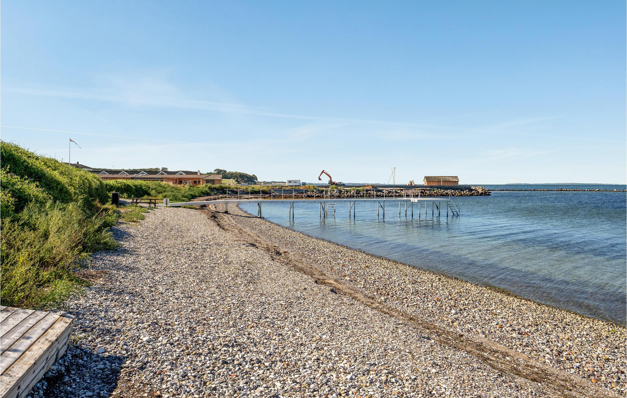 Es gibt auch eine Marina im Gebiet. Der Spielplatz mit Ballplatz und Hüpfkissen liegt auf der großen Rasenfläche, wo es auch den Minigolfplatz und eine Boulebahn gibt (bitte eigene Schläger und Bälle/Kugeln mitbringen). Vom nahe gelegen kleinen Badestrand können Sie herrliche Sonnenuntergänge über dem Wasser und in Richtung Fünen bewundern. Terrassen- und Doppelhäuser liegen in 100 m bis 300 m Entfernung zum Meer und der Marina. Die Häuser haben offene Terrassen, sie sind mit Gartenmöbeln ausgestattet.