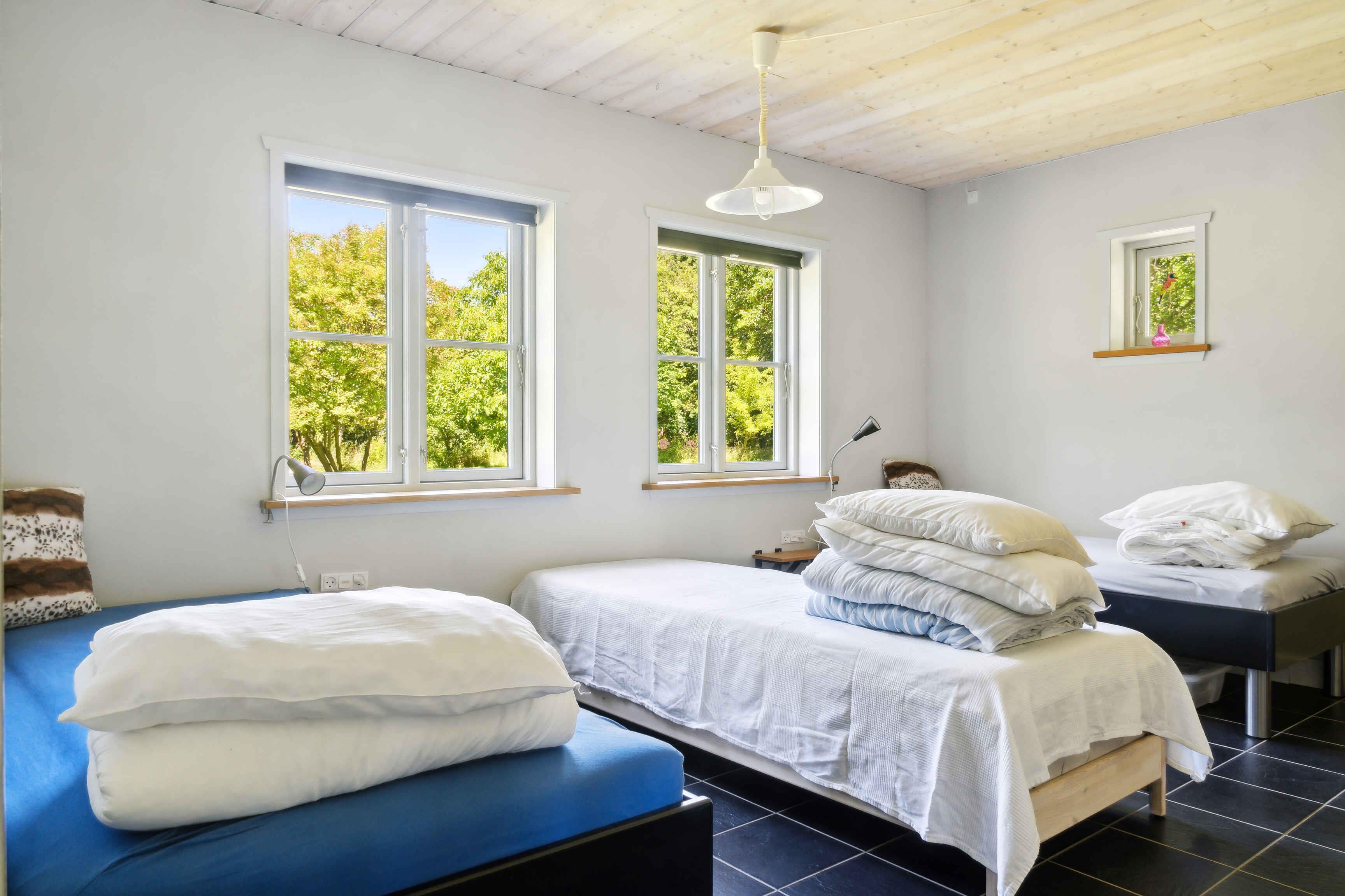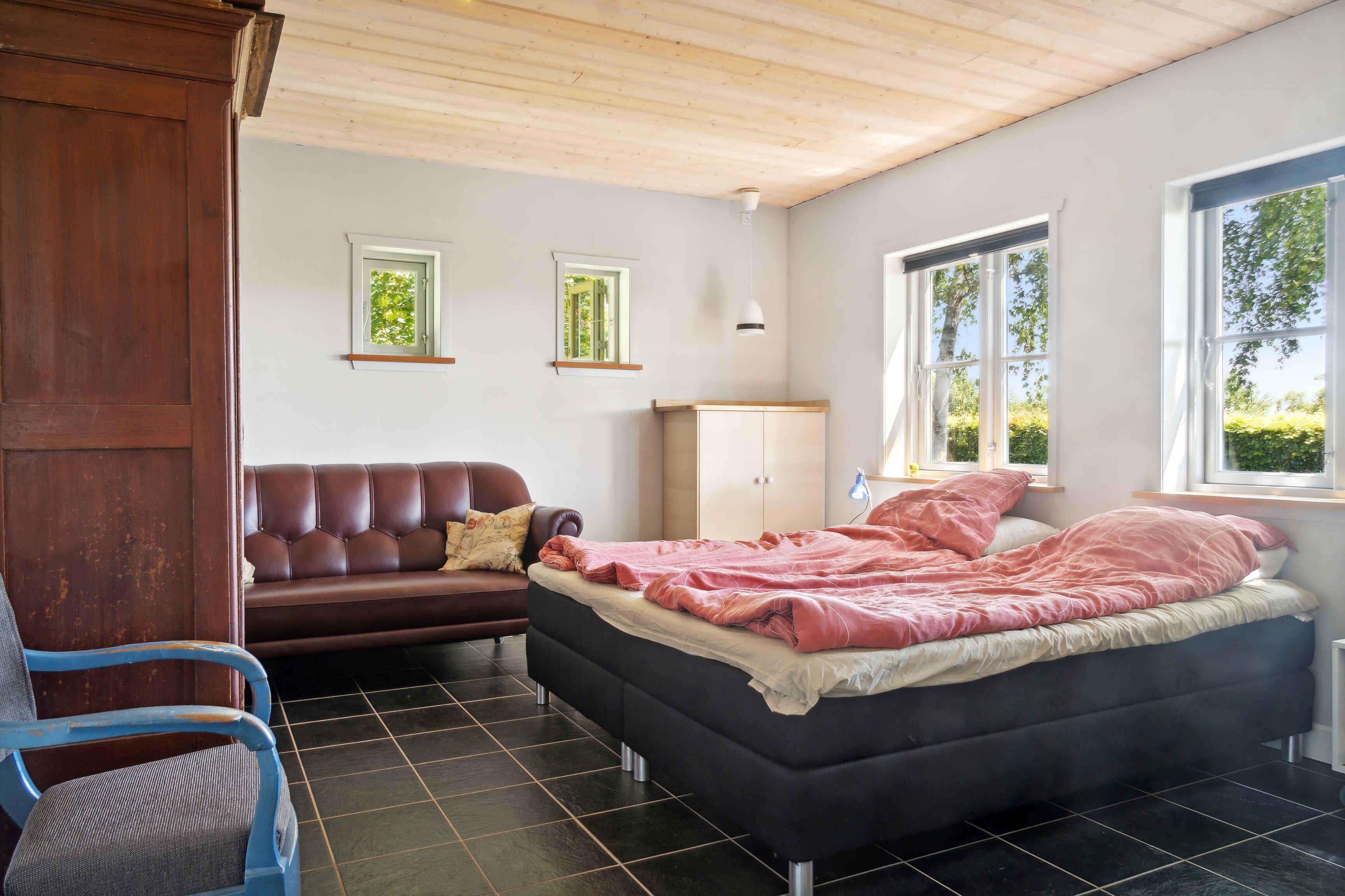 Das 114 m² große Ferienhaus liegt auf einem großen, geschützten Grundstück, nur 75 Meter von einem Sandstrand und Badesteg am Maglehøj Strand entfernt. Helle Wohnbereiche, Fliesenböden und ein ebener Grundriss machen das Haus für Familien und mehrere Generationen angenehm. Die zwei großen Schlafzimmer bieten insgesamt sechs Schlafplätze. Das Haus verfügt über breite Türen, einschließlich des Eingangs, und ist rollstuhlgerecht. Fußbodenheizung mit Erdwärme, kostenloses Internet und eine TV-Box mit 25 Sendern, mindestens zwei davon deutsch. Die Küche ist mit integriertem Kühl-/Gefrierschrank und Geschirrspüler ausgestattet. Draußen gibt es große Terrassen zur Straße und zum Garten mit Grill und guten Gartenmöbeln. Auf dem Grundstück stehen ein Shelter, Bänke und eine Feuerstelle – ideal für lange Tage im Freien. Die Umgebung zieht Gäste an, die Ruhe, Nähe zum Meer und leichten Zugang zur Natur suchen. Der seichte Strand ist kinderfreundlich, und der Badesteg bietet gute Bademöglichkeiten. Die Küste lädt zu Spaziergängen ein, und offene Landschaften eignen sich zum Radfahren. In der Nähe gibt es Hofläden, kleine Hafenorte und kurze Wege zu Ausflugszielen im Süden von Lolland. Der Nakskov Fjord ist bequem erreichbar und bekannt für Vogelreichtum und ruhige Gewässer. Sonnenuntergänge schaffen eine besondere Stimmung, zu der viele zurückkehren. Das Haus eignet sich für Familien, Paare und Gäste, die Urlaub nah am Wasser und in der Natur wünschen. Parken auf dem Grundstück. Keine Vermietung an Jugendgruppen. Achtung: Wird nicht für gewerbliche Nutzung vermietet.