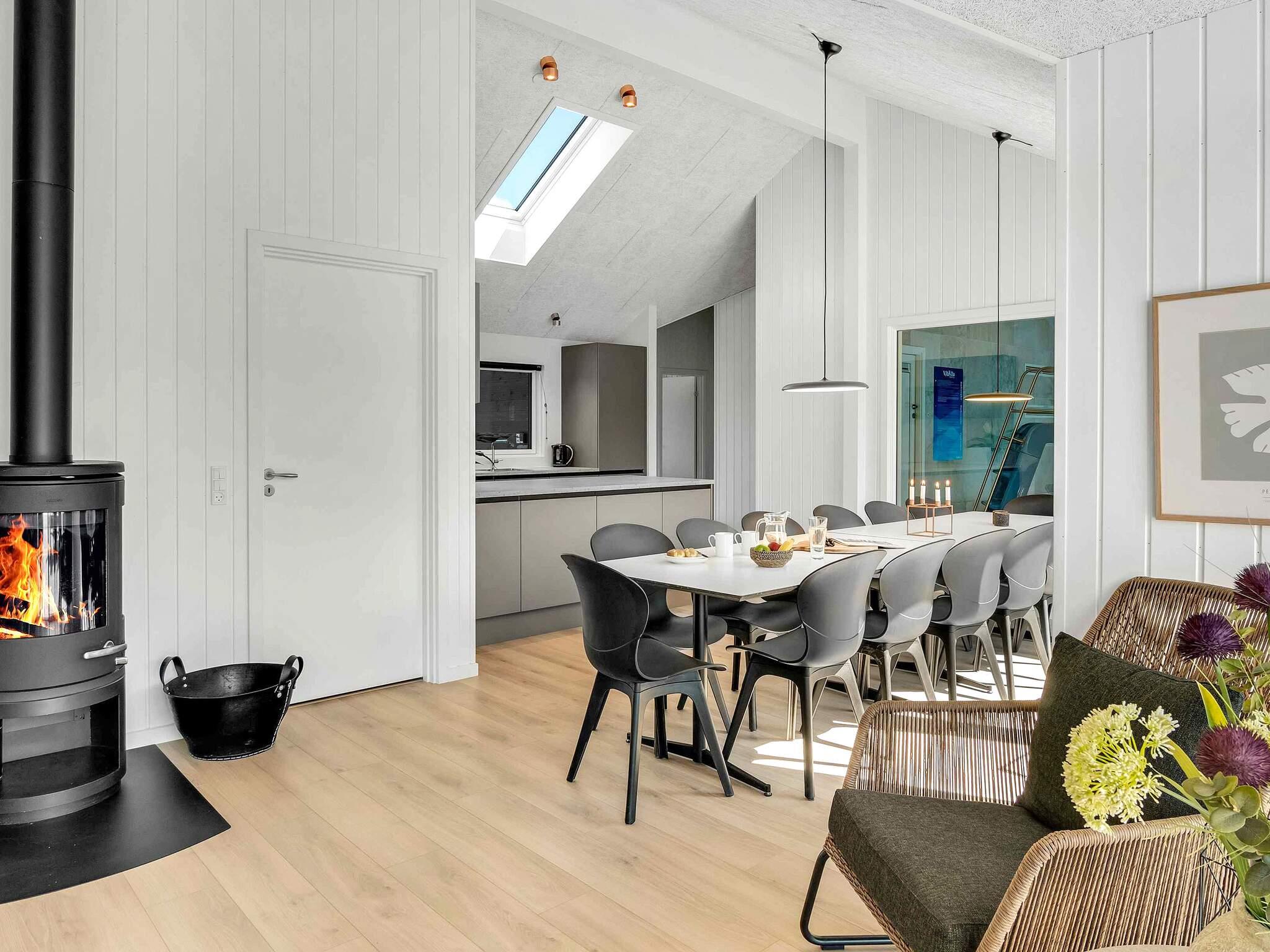 Wenn es Abend wird, treffen Sie sich in der gemütlichen Lounge. Hier duftet es nach hausgemachten Speisen aus der gut ausgestatteten Küche, während die Flammen des Holzofens für eine warme Atmosphäre sorgen. Genießen Sie nach dem Abendessen einen Film auf dem 65-Zoll-Smart-TV oder erzählen Sie sich die Erlebnisse des Tages.