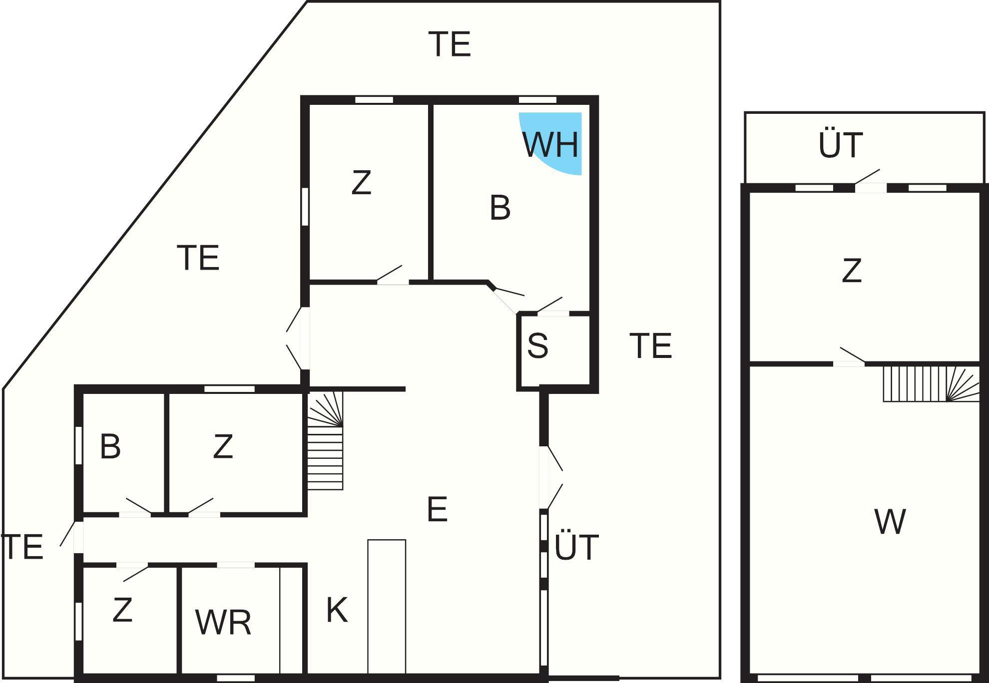 Bad: WC, Waschb., Dusche, Fußbodenheiz.