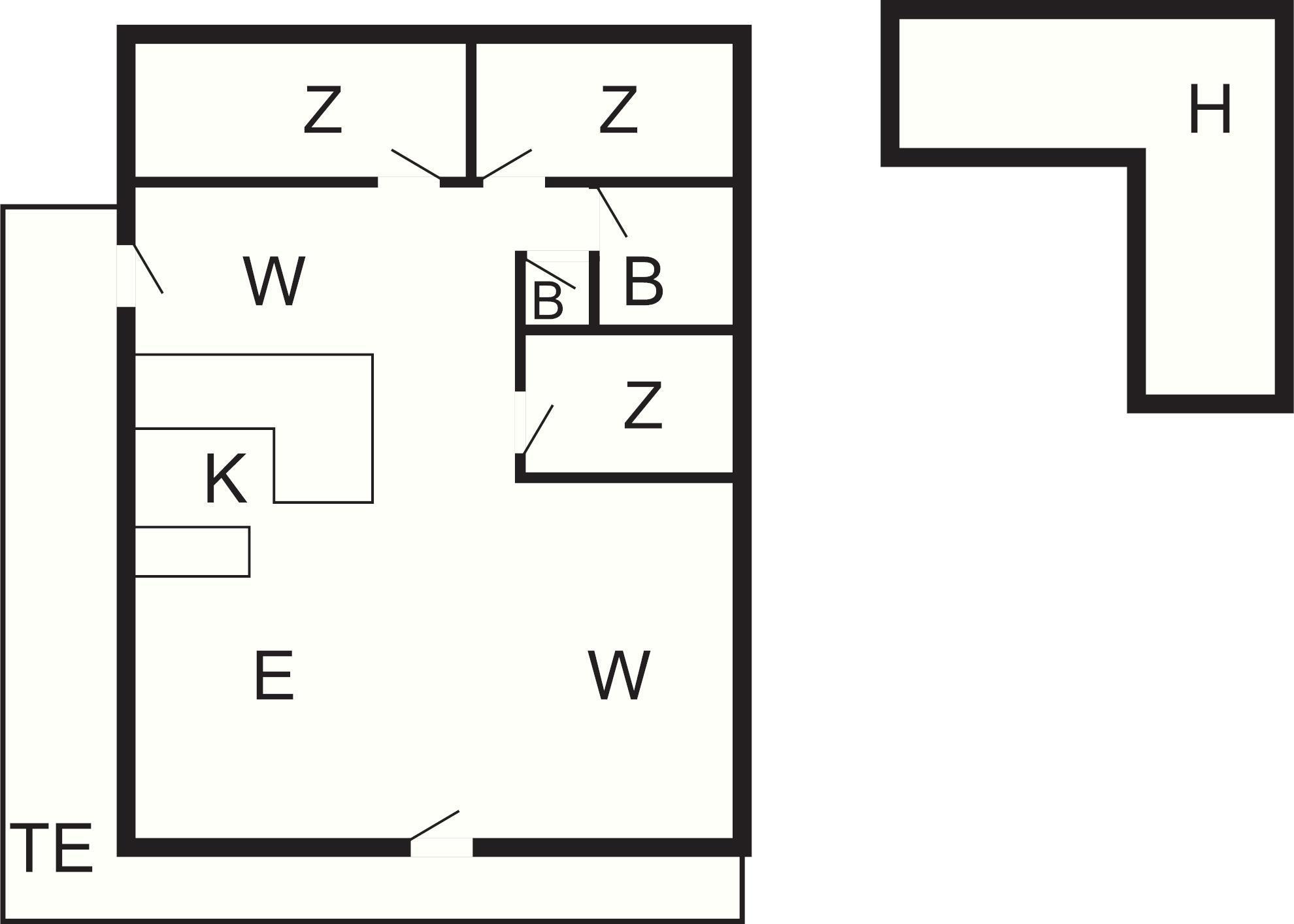 Off. Küche: E-Herd, Kühl-Gefrier-Kombi, Mikrow., Abzugsh., Kaffeem., Spülm.