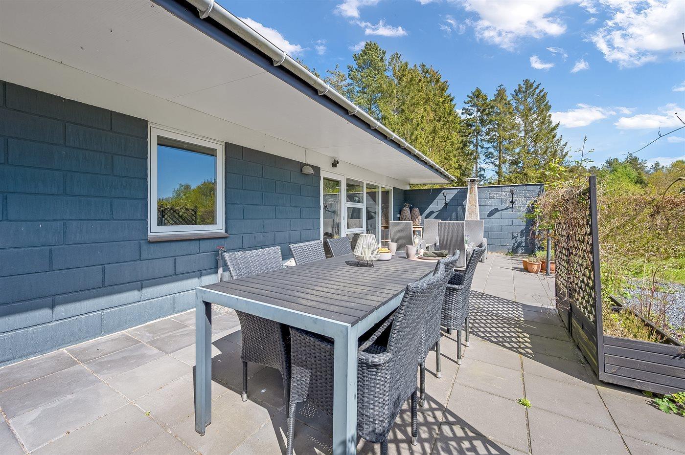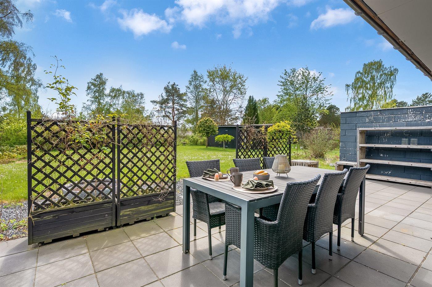 Das Haus befindet sich auf einem schönen Grundstück mit einem guten Garten und einer nach Süden ausgerichteten Terrasse. Hier gibt es gute Windschutz- und Überdachungsmöglichkeiten, und durch die großen Fensterfronten des Hauses kannst du leicht sehen, was im Garten passiert, während die Kinder spielen.