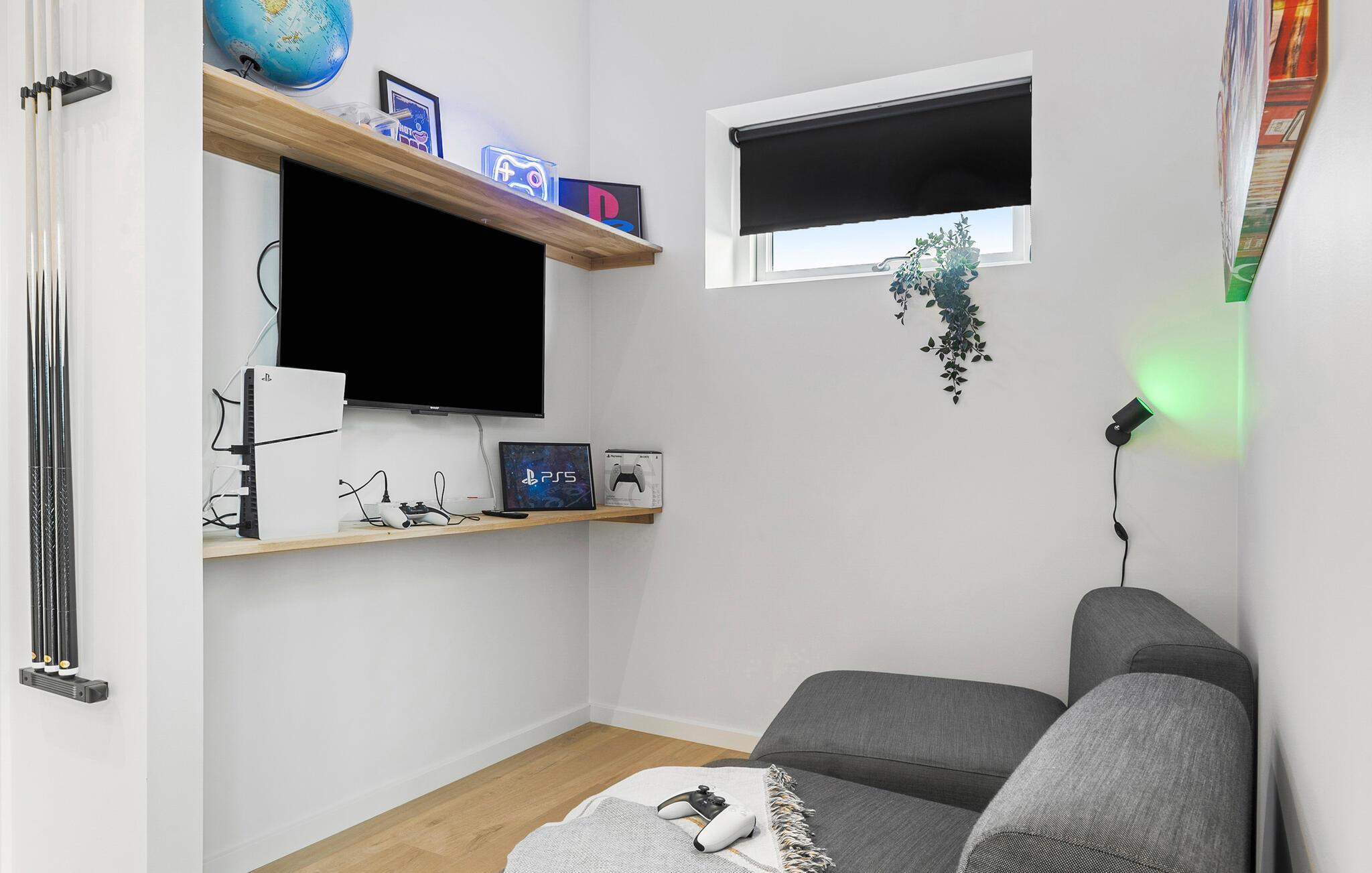 Die geräumige Terrasse mit dem überdachten Bereich wird Ihr Lieblingsplatz an Sonnentagen. Hier finden Sie sowohl Pool als auch Whirlpool sowie eine Außensauna, eine Warmwasserdusche und ein Kaltwasserbecken. Lassen Sie den Tag mit einem Grillabend ausklingen.