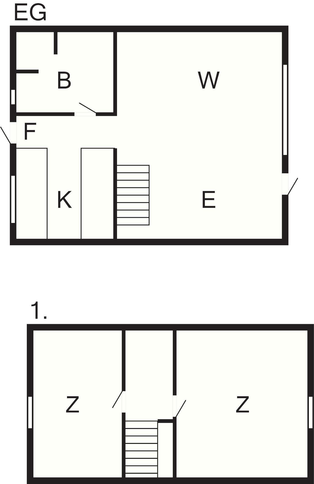 Küche: E-Kochpl., Ofen, Kühlschr. m. Gefrierfach, Kaffeem.