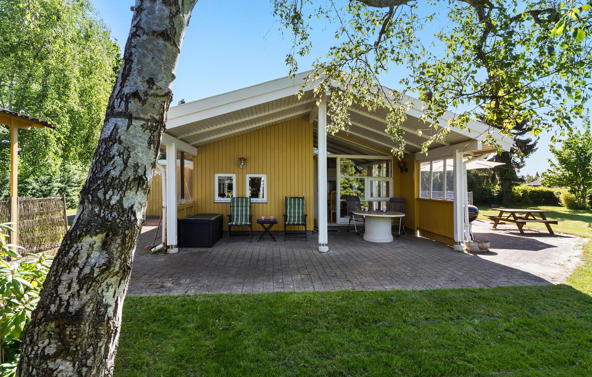 Familienfreundliches Ferienhaus in Gilleleje mit Aktivitätsraum und zwei überdachten Terrassen für erholsame Urlaubstage.