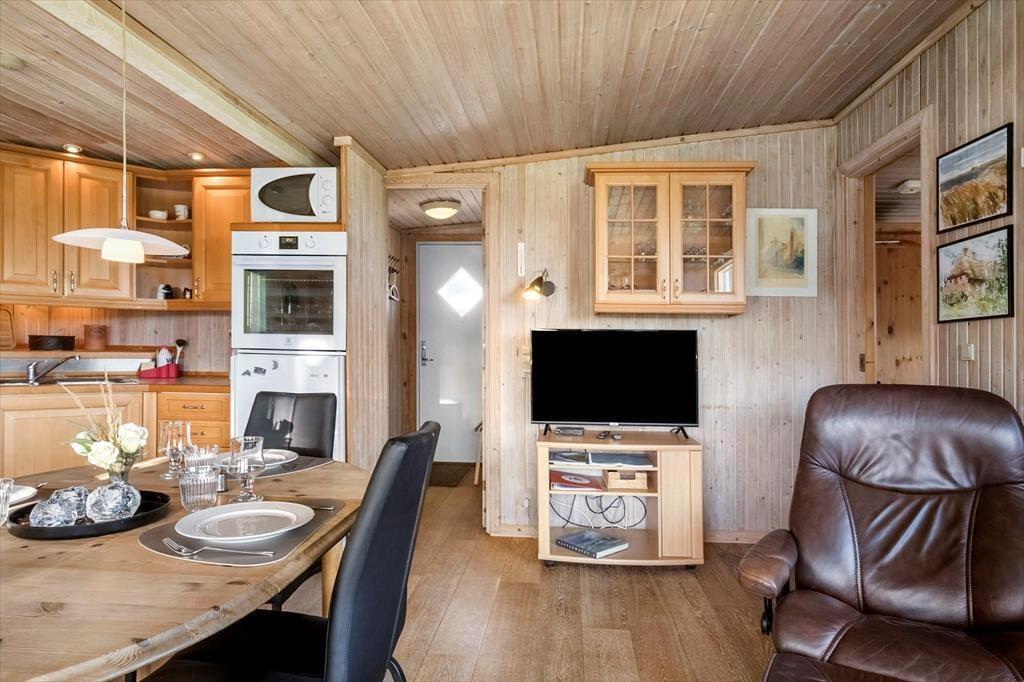 Sobald du das Ferienhaus auf Porsevej 71 betrittst, breitet sich eine warme und heimelige Atmosphäre aus, die sofort für Urlaubsstimmung sorgt. Die Einrichtung ist durchdacht und funktional, sodass du entspannt Zeit mit deinen Liebsten verbringen kannst – ob mit der Familie, guten Freunden oder mehreren Generationen. Das Herzstück des Hauses ist das gemütliche Wohnzimmer mit knisterndem Holzofen, der besonders an kühlen Abenden für wohlige Wärme sorgt. Das Wohnzimmer ist offen mit der Küche verbunden – so kannst du dich beim Kochen, Reden und Lachen mit allen austauschen. Die großen Fenster lassen viel Tageslicht herein und eröffnen den Blick ins Grüne. In den Schlafzimmern findest du zudem ruhige Rückzugsorte für erholsame Nächte.