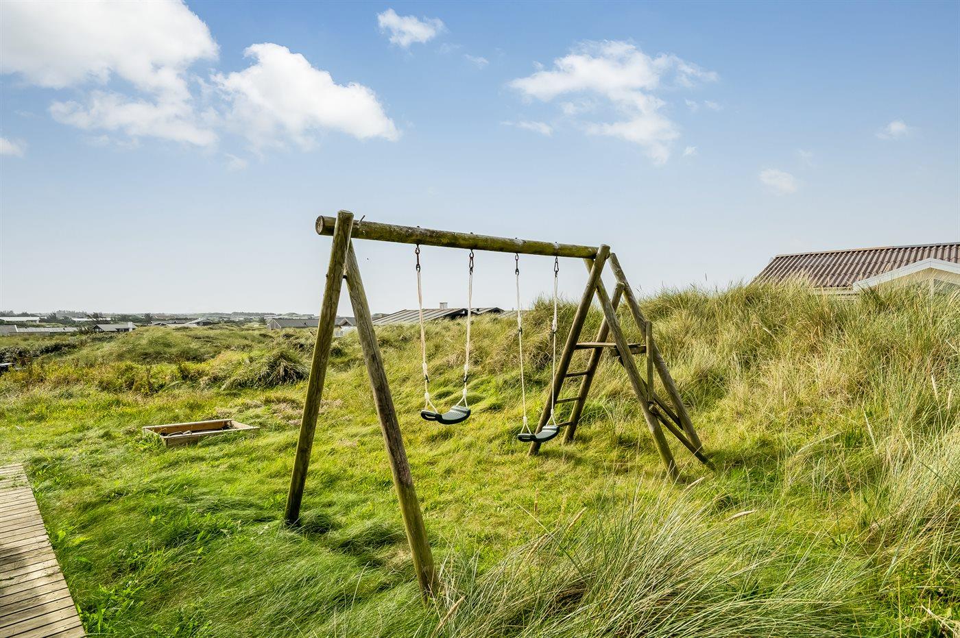 Die Ferienunterkunft liegt auf einem 1600 m² großen Dünengrundstück. Die Entfernung zum Meer beträgt 150 m. Die nächste Einkaufsmöglichkeit liegt 500 m entfernt. In einem Abstand von 11500 m gibt es einen Golfplatz. Es steht ein 120 m² Terrassenareal zur Verfügung. Außerdem gibt es 10 m² überdachte Terrasse. Geräteraum. Schaukel. Parkplatz auf dem Grundstück.