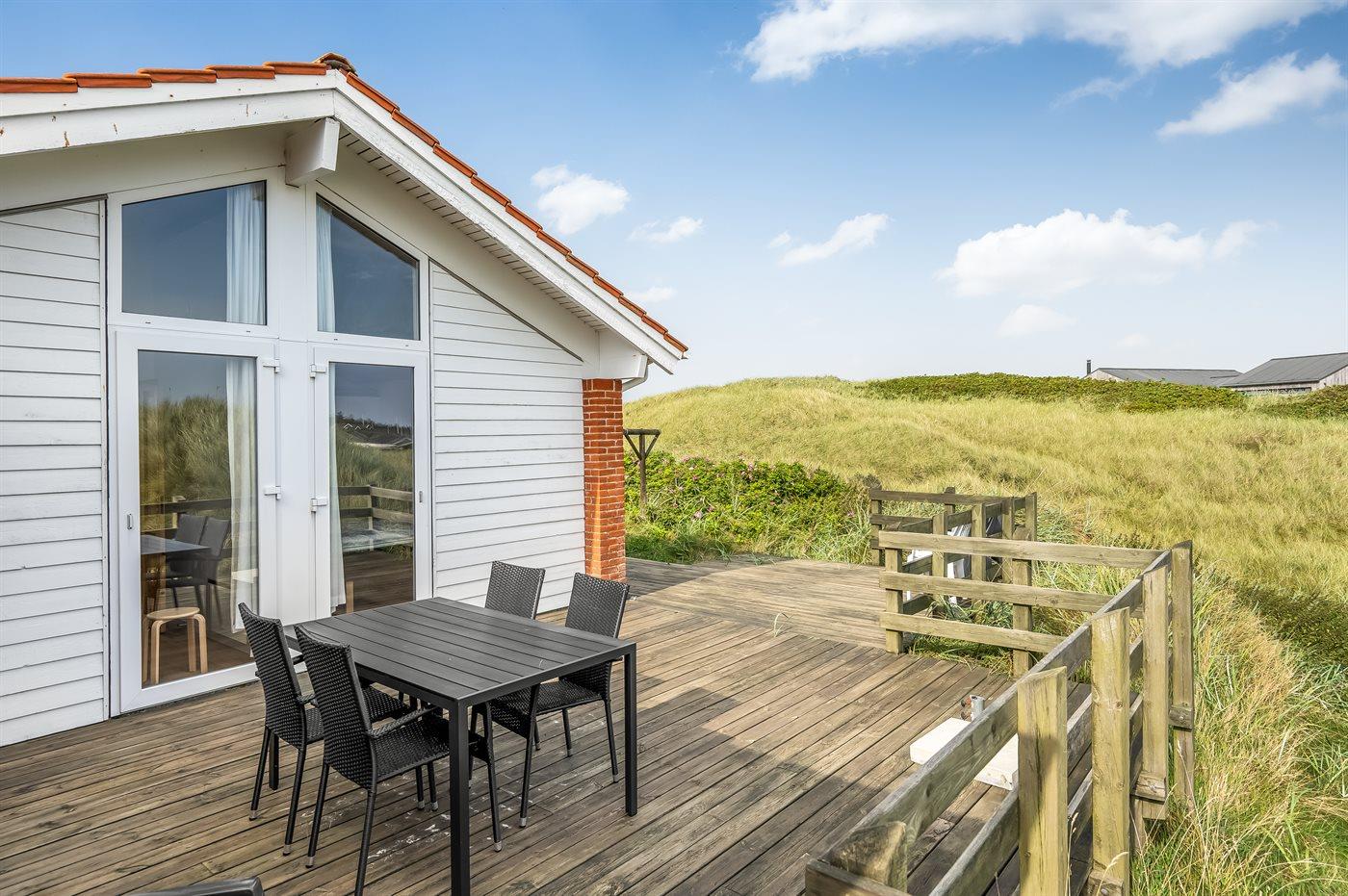 Das Haus wurde gebaut, um dem rauen Wetter zu trotzen, bietet aber gleichzeitig den perfekten Rahmen für einen gelungenen Urlaub an. Es gibt herrliche Terrassen, auf denen du an schönen Tagen die Aussicht genießen und das rauschen des Meeres hören kannst. Schnapp dir ein gutes Buch und mach es dir auf der Terrasse oder in der Düne gemütlich.