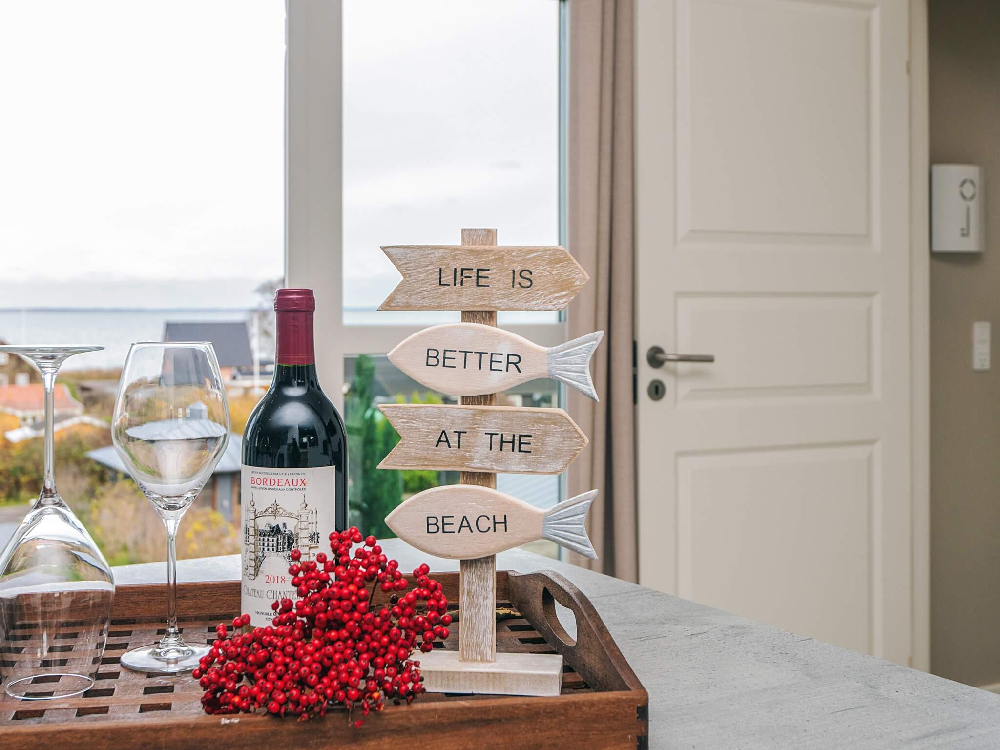 Willkommen in einem modernen, energieeffizienten Ferienhaus mit Panoramablick auf die Bucht von Grønninghoved! Sie wohnen hier nur 170 Meter vom Wasser entfernt, somit bietet sich reichlich Gelegenheit, Wasser und Natur hautnah zu genießen. In den umliegenden Ferienhausgebieten gibt es viele Wanderwege, die in der Saison auch zu zwei Campingplätzen mit Pool und Kiosk führen. Besonders empfehlenswert ist eine Wanderung zum Skamlingsbanken, wo Sie das Rauschen der Geschichte spüren können. In den nahegelegenen Feriengebieten können Sie Restaurants besuchen, und in der größeren Stadt Kolding finden Sie eine vielfältige Auswahl an Restaurants und Geschäften. Auch das Slotssøbadet und der Kolding Legepark sind nur eine kurze Autofahrt entfernt.