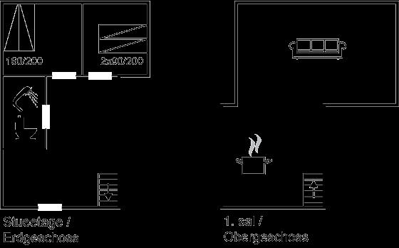 Die Schlafplätze verteilen sich auf 2 Schlafräume. 2 Schlafplätze in einem Doppelbett. 2 Schlafplätze in Einzelbetten.