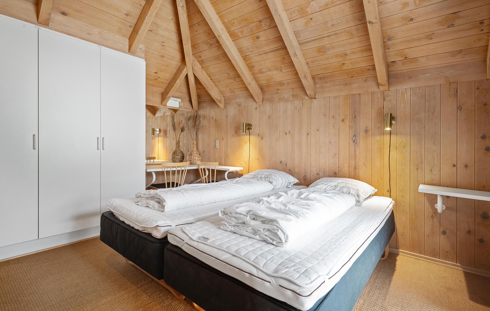 Dieses große Holzhaus mit Reetdach liegt in der letzten Dünenkette an der Nordsee. Es ist in zwei Abteilungen mit je zwei Schlafräumen und eigenem Bad sowie einem Schlafboden mit noch zwei Schlafplätzen aufgeteilt. Es ist rustikal eingerichtet mit sichtbarem Gebälk und Steinfußböden. Das Haus verfügt über mehrere Terrassen. Nur ca. 500 m entfernt liegt ein großes Reitzentrum. Nach einem schönen Tag an der frischen Nordseeluft kann sich die ganze Familie im Pool oder in der Sauna entspannen. Ein IP-Telefon für Inlandsgespräche ist vorhanden. Dieses große Luxushaus bietet Platz und Komfort für mehrere Familien. Um Strom zu sparen, ist das Haus mit einer Wärmepumpe ausgestattet. Schnurloses Telefon und WLAN.