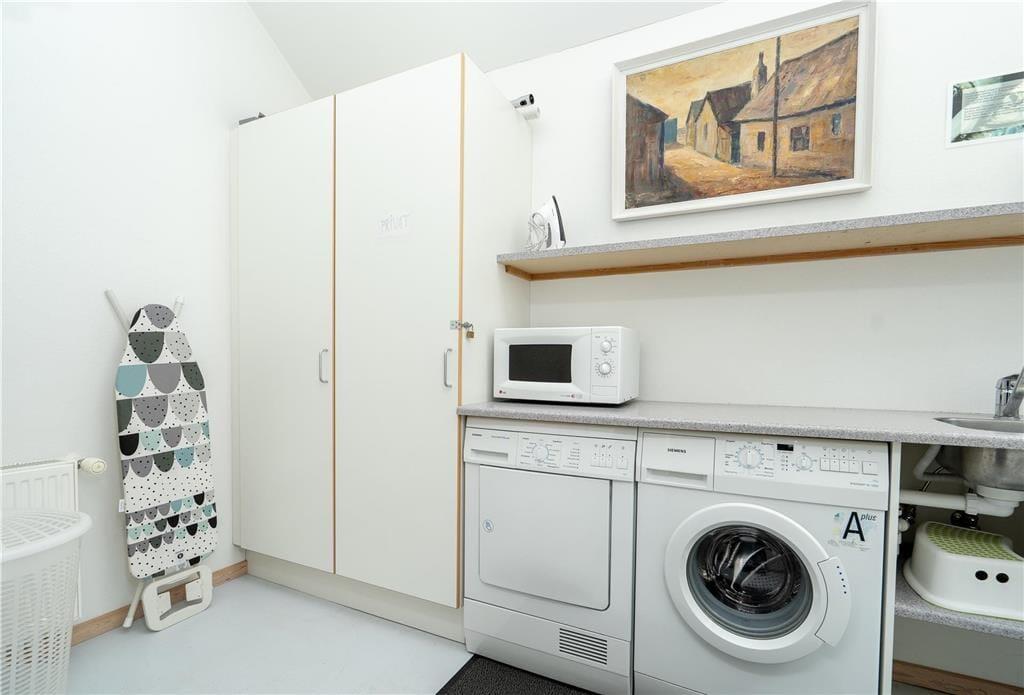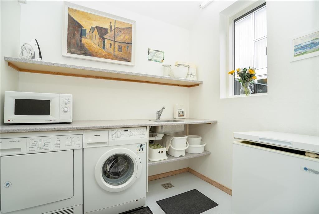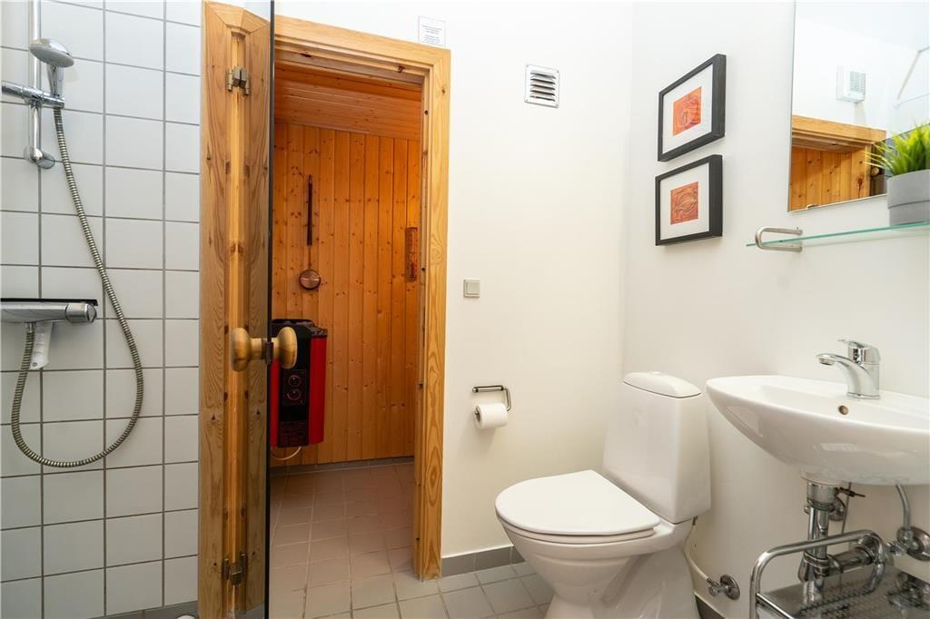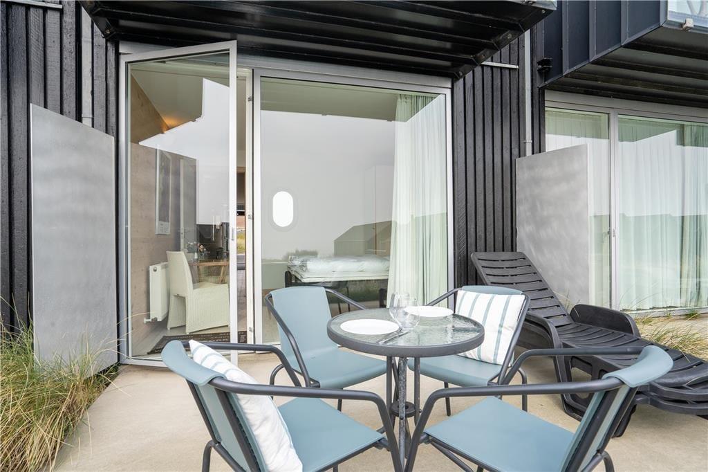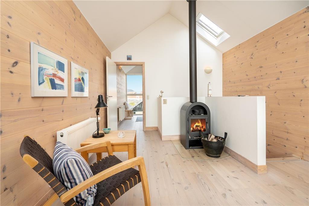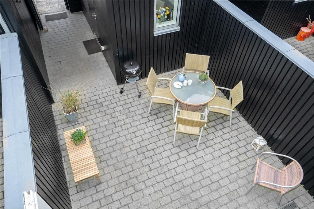 Die Außenbereiche präsentieren sich durchweg schön. Gen Süden laden eine Terrasse und ein kleiner Balkon zum Genießen der Sonne und des Fjordblicks ein. Auf der anderen Seite des Reihenhauses erwartet Sie ein geschlossener Hinterhof, in dem Sie sich ebenfalls gerne aufhalten werden. Ein Grill, Gartenmöbel und Liegestühle sind vorhanden.