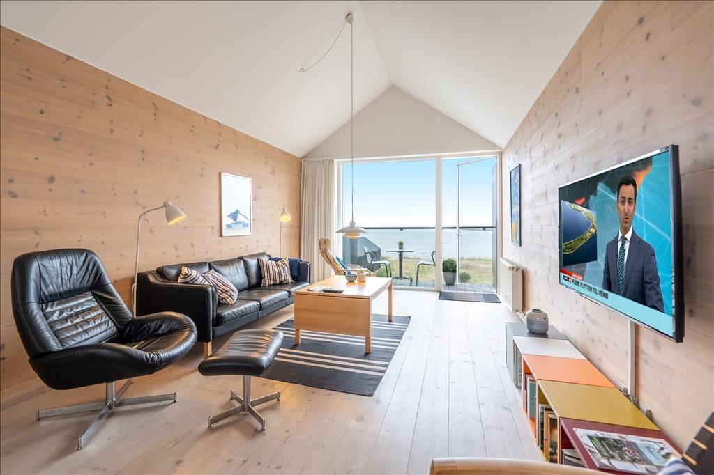 Dieses schöne Ferienhaus besticht mit seiner fantastischen Lage mitten in Hvide Sande - ganz nah an der Schleuse. Im Wohnraum, in einem der Schlafzimmer und auf den Außenarealen genießen Sie den Ausblick über den Fjord.
