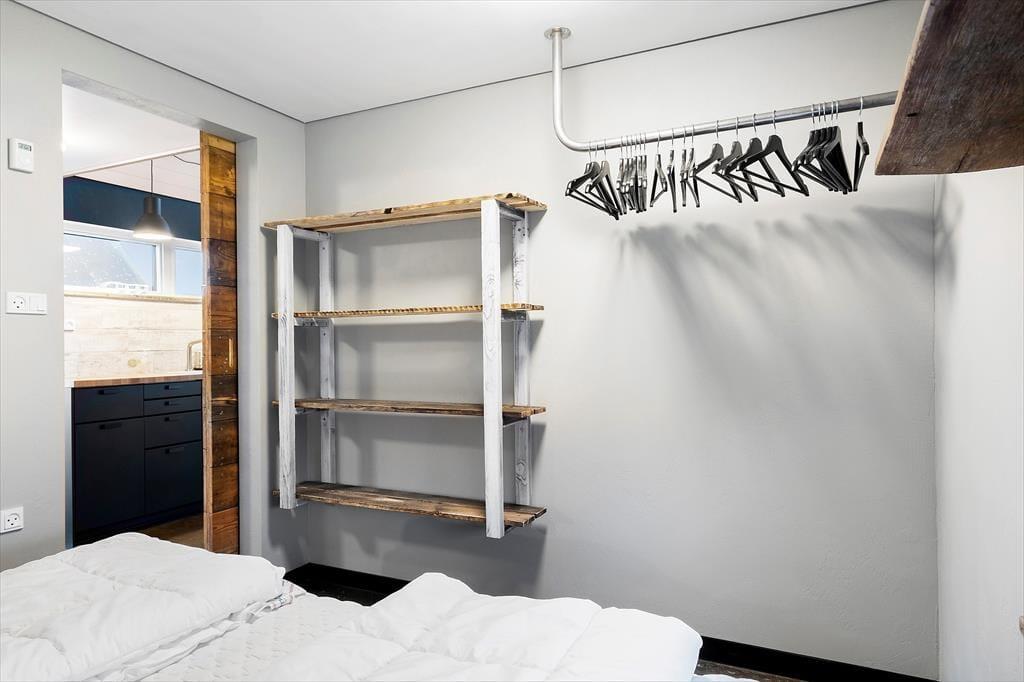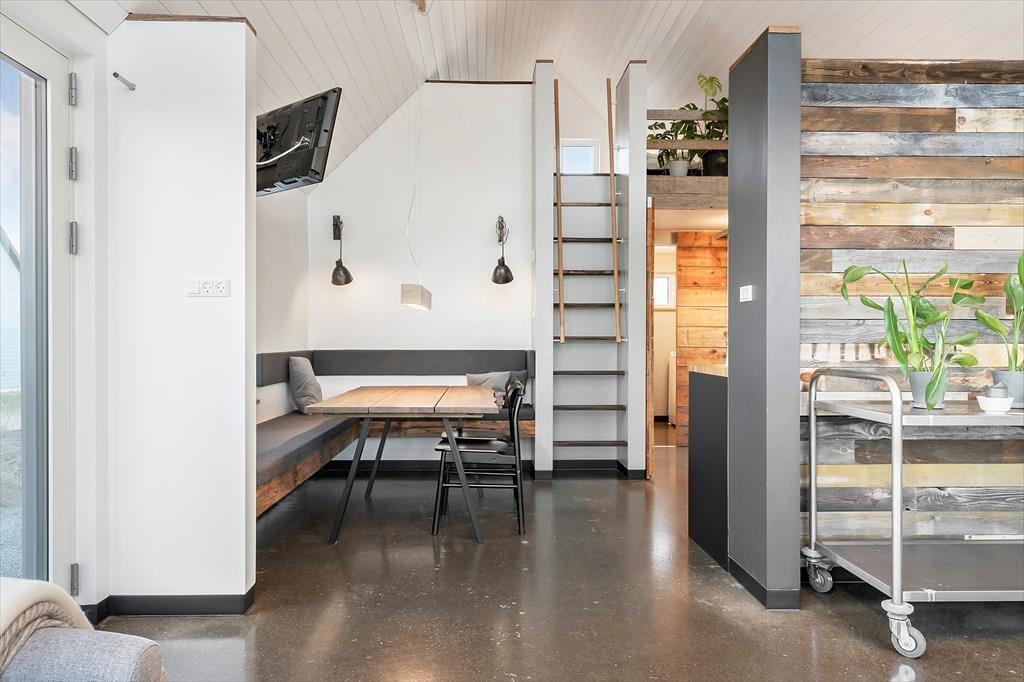 Der Arbeitsplatz im Atelier macht dieses Urlaubsdomizil zu einer idealen Destination für Maler, Musiker, Schriftsteller, Blogger und andere Kreative. Selbstverständlich kann das Mietobjekt aber auch als gewöhnliches Ferienhaus genutzt werden. Die großen Fensterpartien im Atelier sind ohne Gardinen, eröffnen daher einen fantastischen Ausblick über den Tykerhavnen und bringen Sie ganz nah an die Fjordfischer und an die zahlreichen Spaziergänger auf dem Fjordstien heran.