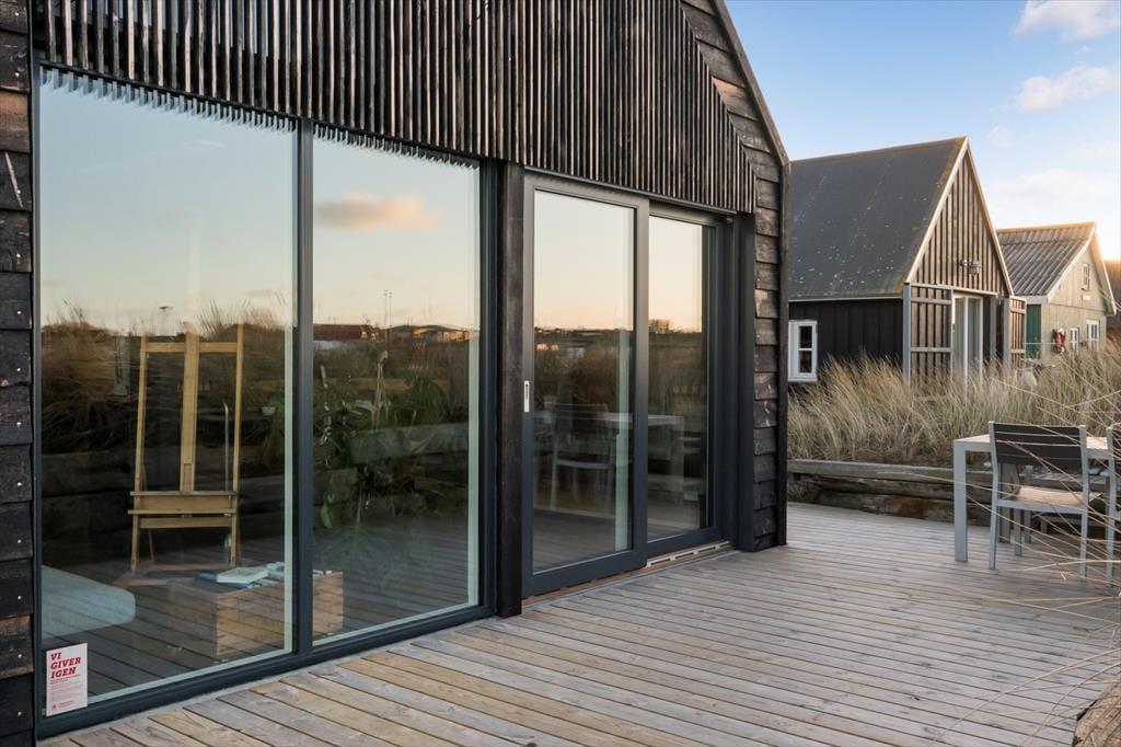 Die ausdrucksstarke Fassade und das Dach sind mit Brettern aus dänischer Douglasie versehen, die im klassisch japanischen Shou Sugi Ban-Stil gebrannt wurden. Auf der Holzterrasse genießen Sie einen freien Ausblick auf den reizvollen, alten Jollenhafen und auf die traumhaft schönen Sonnenuntergänge im Westen.
