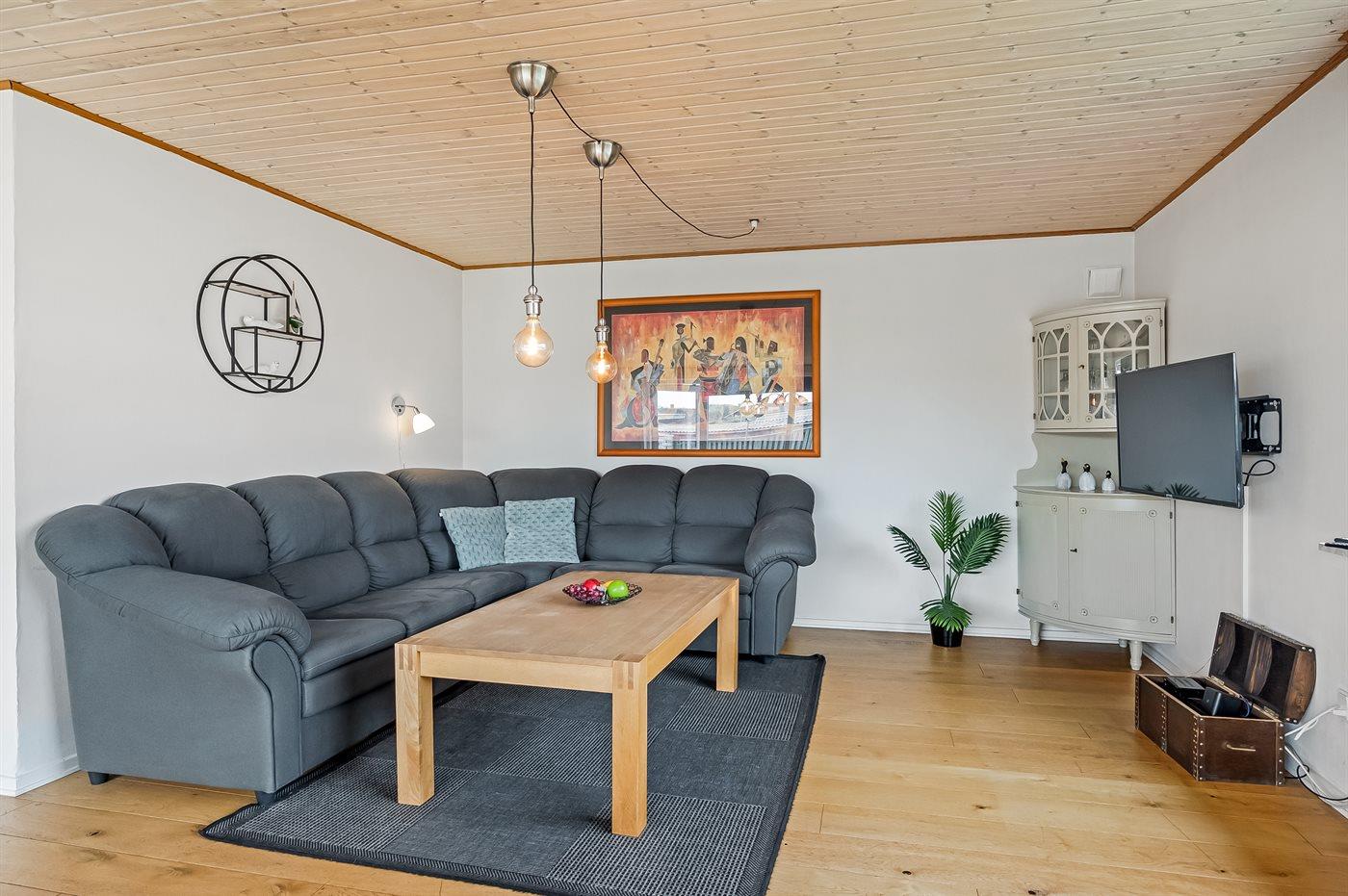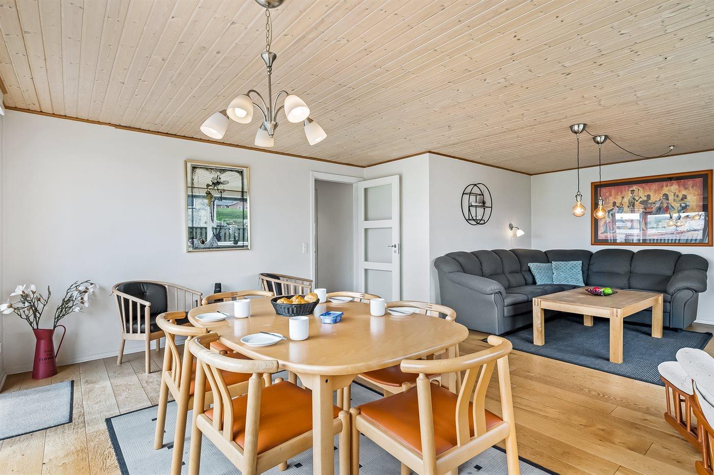 Die Ferienunterkunft liegt auf einem 552 m² großen Naturgrundstück. Das Grundstück ist eingezäunt. Die Entfernung zum Meer beträgt 400 m. Die Entfernung zum Fjord beträgt 400 m. Die nächste Einkaufsmöglichkeit liegt 600 m entfernt. Parkplatz auf dem Grundstück.