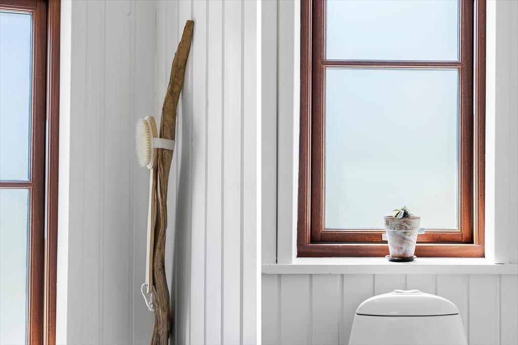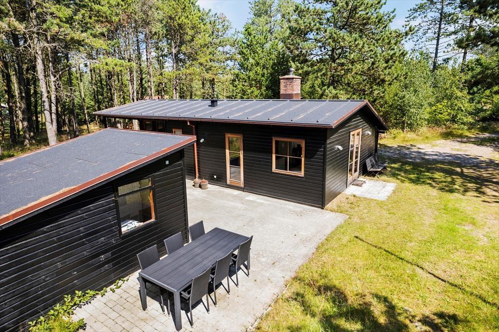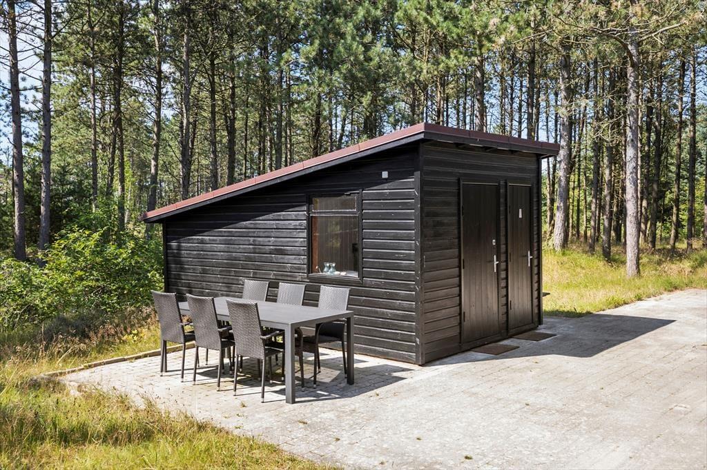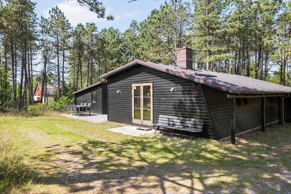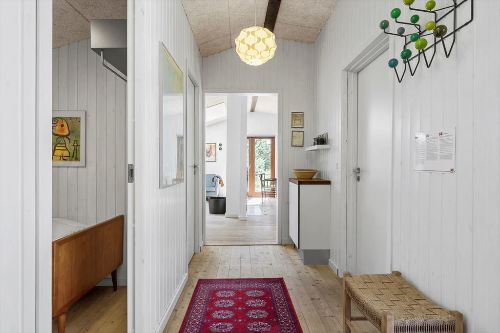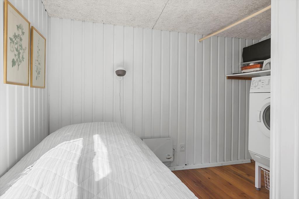 Das schwarz gestrichene Holzhaus steht seit 1961 mitten in der Natur und wurde 2017 erfolgreich modernisiert, sodass es innen hell und einladend ist, während die Räume eine klassische Sommerhausgemütlichkeit ausstrahlen. Selbst wenn du drinnen entspannst, hast du guten Kontakt zur Natur, denn durch die Fenster kannst du auf die hohen Bäume des Grundstücks blicken – und vielleicht siehst du sogar ein Reh oder anderes Wild, das vorsichtig vorbeitrippelt, während du deinen Morgenkaffee am Esstisch genießt. Im Wohnzimmer sorgen Dachfenster dafür, dass viel Sonne hereinkommt, und der Kaminofen trägt zu einer warmen und gemütlichen Atmosphäre bei, während die offene Küche dir einen funktionalen Rahmen für die Essenszubereitung bietet. Ein Duschbad und zwei schöne Schlafzimmer befinden sich ebenfalls im Ferienhaus, und wenn du und deine Lieben mehr Platz benötigen, gibt es ein zusätzliches Schlafzimmer mit Einzelbett und eine Gästetoilette im Nebengebäude.