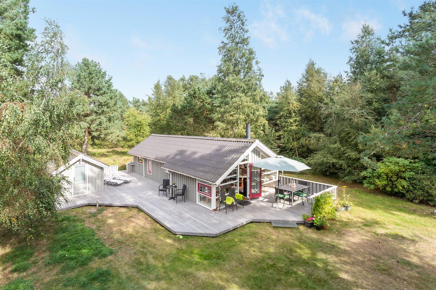 Gemütliches Ferienhaus nahe dem Meer auf sonnigem Heidegrundstück, ideal für Familien und Naturfreunde.