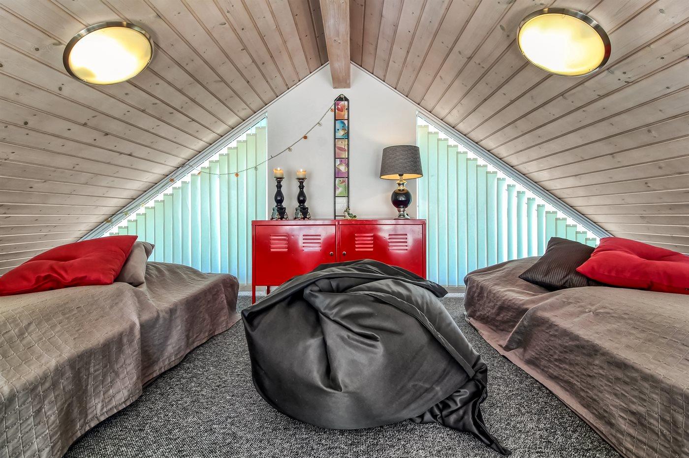 Im Wohnzimmer gibt es ausgang zu Terrasse mit Gartenmöbeln, von der aus man Aussicht auf den einen Spielplatz hat. Große Fenster in beiden Giebeln und ein offenes Obergeschoss mit phantastischem Licht und guter Aussicht über die Golfplätze. 2 Schlafplätze befinden sich im offenen Obergeschoss.