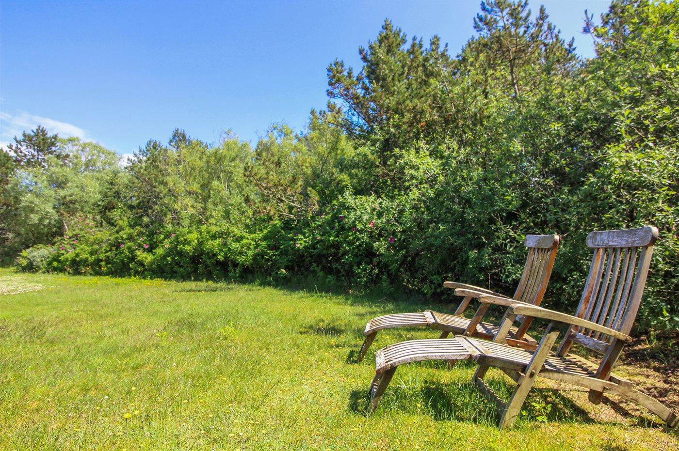Gemütliches und gepflegtes Ferienhaus auf einem sehr großen Grundstück, umringt von Bäumen und anderen Pflanzen. Der Badestrand und Løkken befinden sich ganz in der Nähe. Auch ein Campingplatz mit einem Waschsalon ist nicht weit entfernt.
