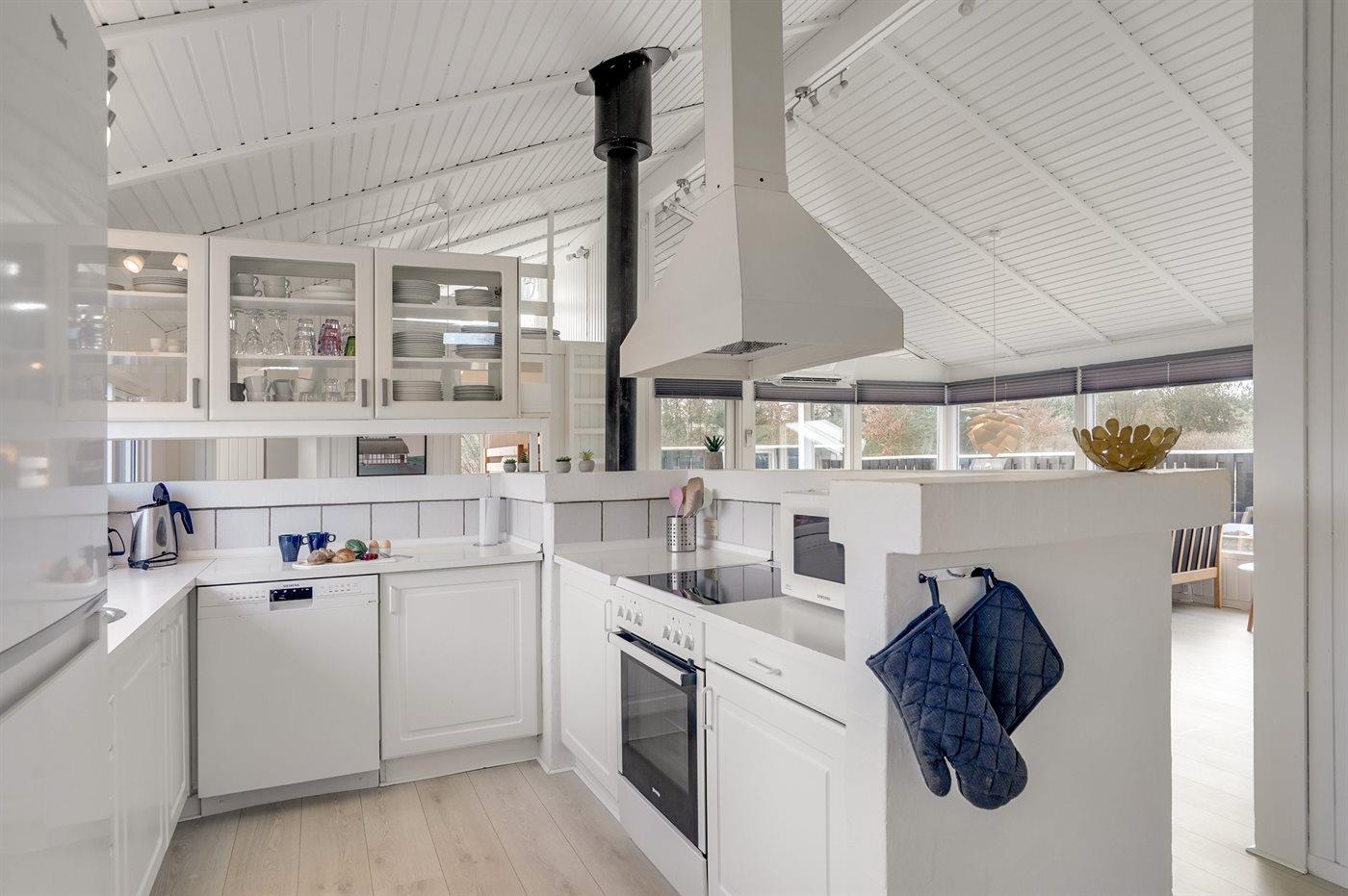 Die Küche ist mit Kühlschrank ausgestattet. Außerdem gibt es 4 Keramik-Kochfelder, Umluftofen, Mikrowelle sowie Geschirrspüler.