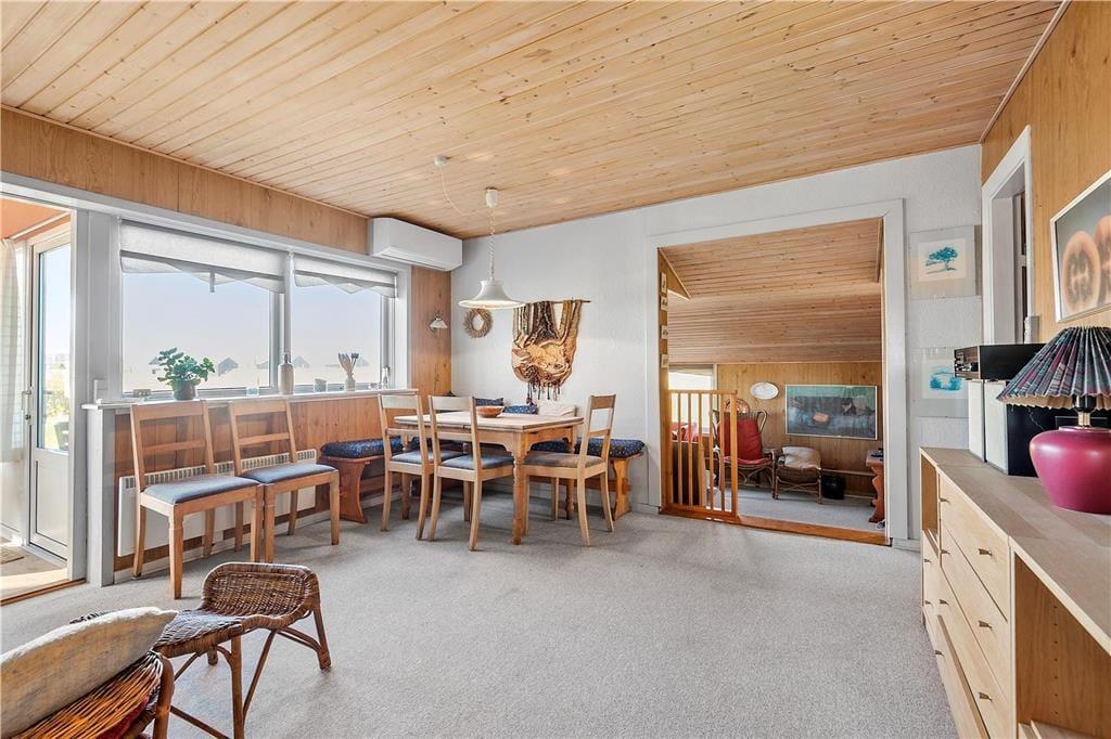 Hier ist jeder Quadratmeter gut genutzt. Das Haus verfügt über drei Schlafzimmer und ein Bad sowie einen gut aufgeteilten Wohnbereich. Von den Schlafzimmern ist eines mit einem Doppelbett, eines mit einem Einzelbett und eines mit einem Etagenbett ausgestattet, sodass Übernachtungsmöglichkeiten für fünf Personen vorhanden sind. Wenn ihr mögt, könnt ihr euch im Wohnbereich versammeln, der aus einer funktionalen Küche sowie aus einem Fernsehzimmer und einem Esszimmer auf verschiedenen Niveaus besteht, die auf charmante Weise über eine Treppe miteinander verbunden sind. Wenn die Sonne scheint, setzt du dich einfach in den Wintergarten, wo die großen Fensterpartien das Sonnenlicht hereinlassen.